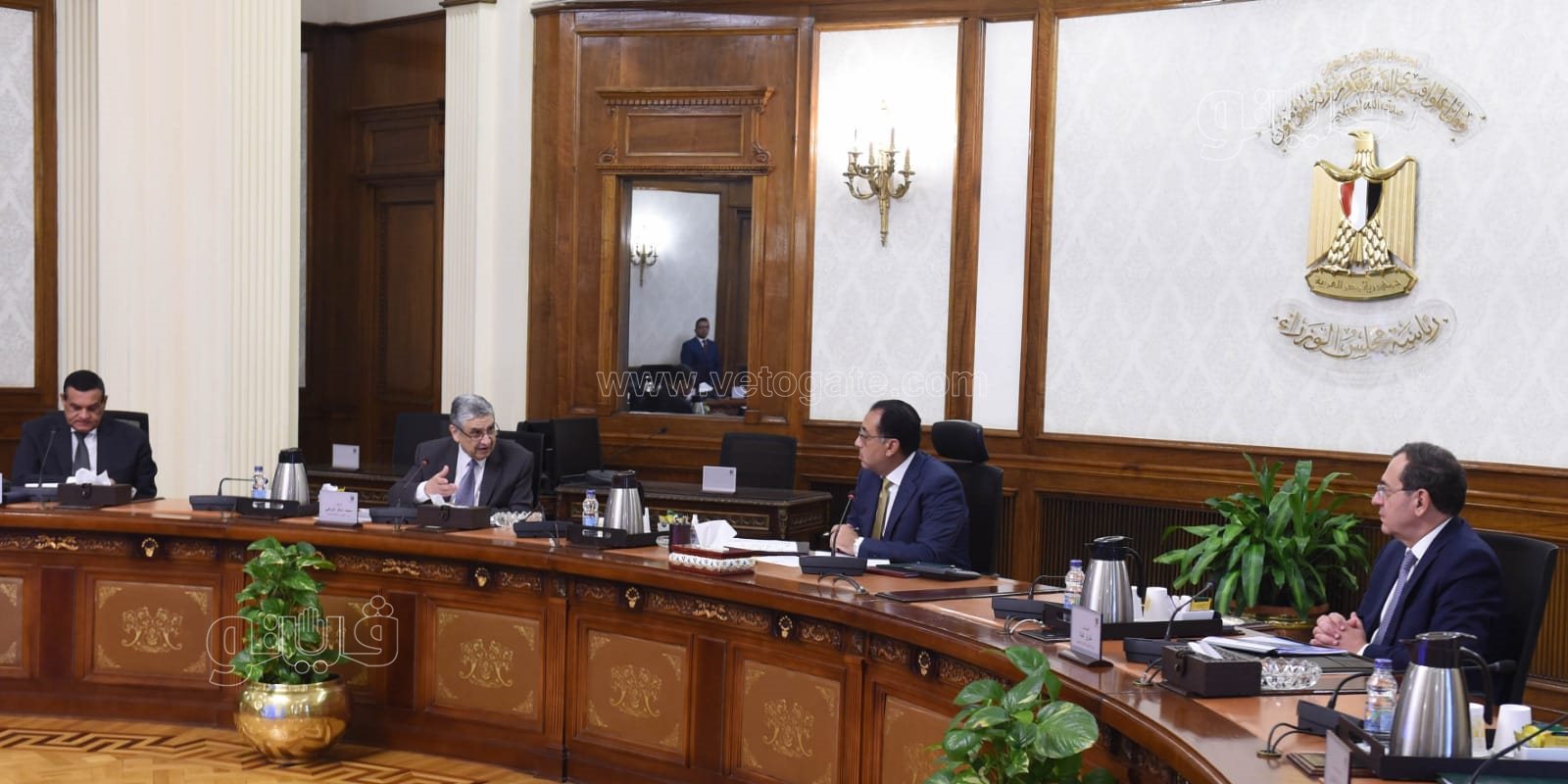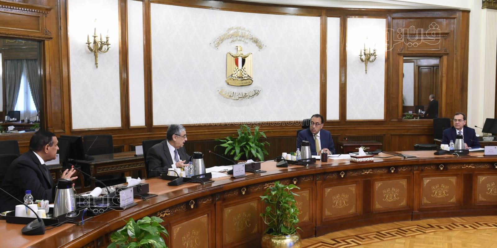 عقد الدكتور مصطفى مدبولي رئيس الوزراء، اليوم، اجتماعا، لمتابعة نتائج تطبيق القرار الصادر الشهر الماضي بشأن ترشيد استهلاك الكهرباء، وذلك بحضور الدكتور محمد شاكر، وزير الكهرباء والطاقة المتجددة، والمهندس طارق الملا، وزير البترول والثروة المعدنية، واللواء هشام آمنة، وزير التنمية المحلية، والمهندس محمد السيد، مساعد وزير التنمية المحلية.