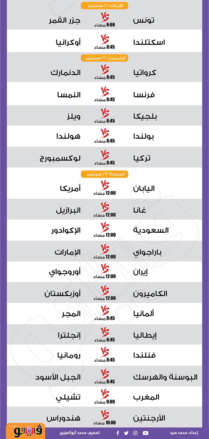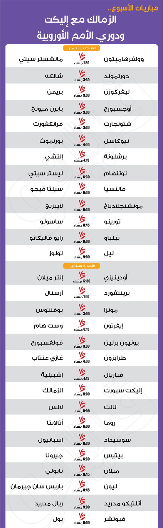 مباريات الأسبوع.. الزمالك مع إليكت ودوري الأمم الأوروبية|إنفوجراف الجمعة 16/سبتمبر/2022 - 03:57 م 9/16/2022 3:57:33 PM الزمالك محمد سيد شارك طباعة 18 حجم الخط شارك طباعة إليكت سبورت باريس سان جيرمان برشلونة بايرن ميونخ دوري الأمم الأوروبية ريال مدريد طرابزون فيوتشر مانشستر سيتي الزمالك
