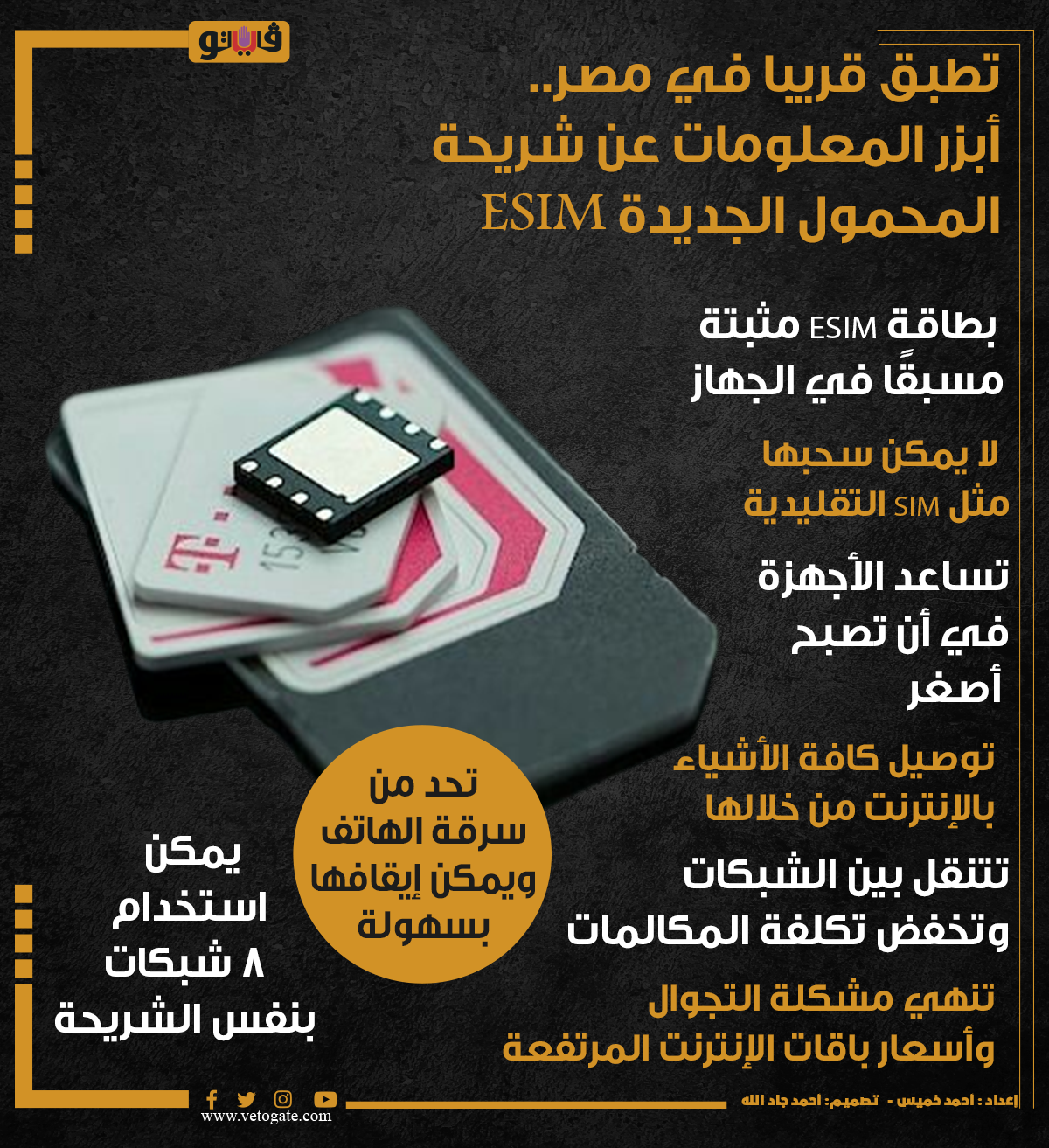 تطبق قريبا في مصر.. أبزر المعلومات عن شريحة المحمول الجديدة ESIM| إنفوجراف الخميس 15/سبتمبر/2022 - 09:37 م 9/15/2022 9:37:07 PM ESIM أحمد خميس شارك طباعة 18 حجم الخط شارك طباعة ESIM SIM الشريحة الإلكترونية