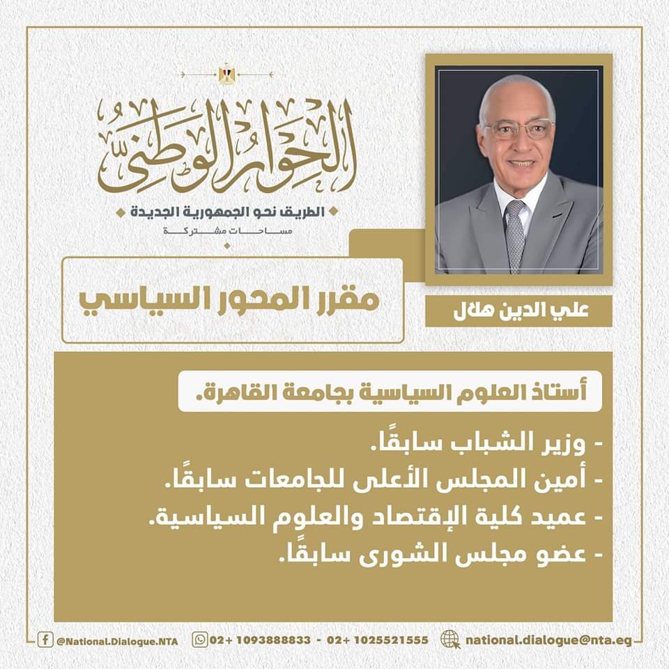 مقرر المحور السياسي علي الدين هلال أستاذ العلوم السياسية بجامعة القاهرة - وزير الشباب سابقًا.