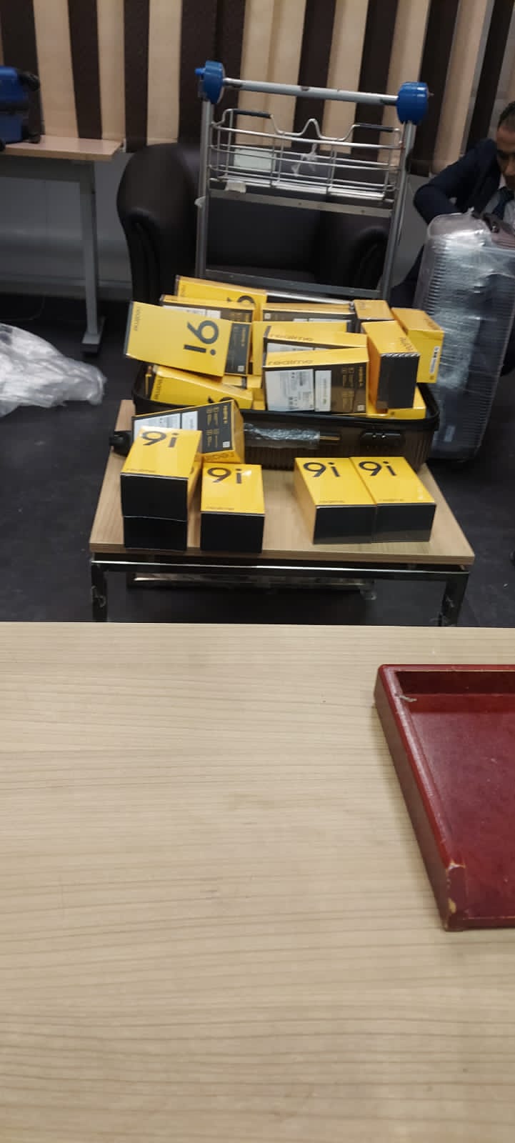 وبتفتيش حقائبه على جهاز الفحص بالأشعة بواسطة أحمد سيد عبد العزيز مأمور الجمرك ومحمد عبد المنعم صالح رئيس القسم واللذين تلاحظ لهما ما يشتبه أن يكون تليفونات، قام ميلاد رسمي مدير الحركة المشرف على صالة الوصول بمبنى الركاب رقم ٣ بتكليف أماني عبد الله صالح مأمور الجمرك بتفتيش حقائب الراكب يدويًّا مما أسفر عن ضبط تليفون محمول ماركة realme 9i.