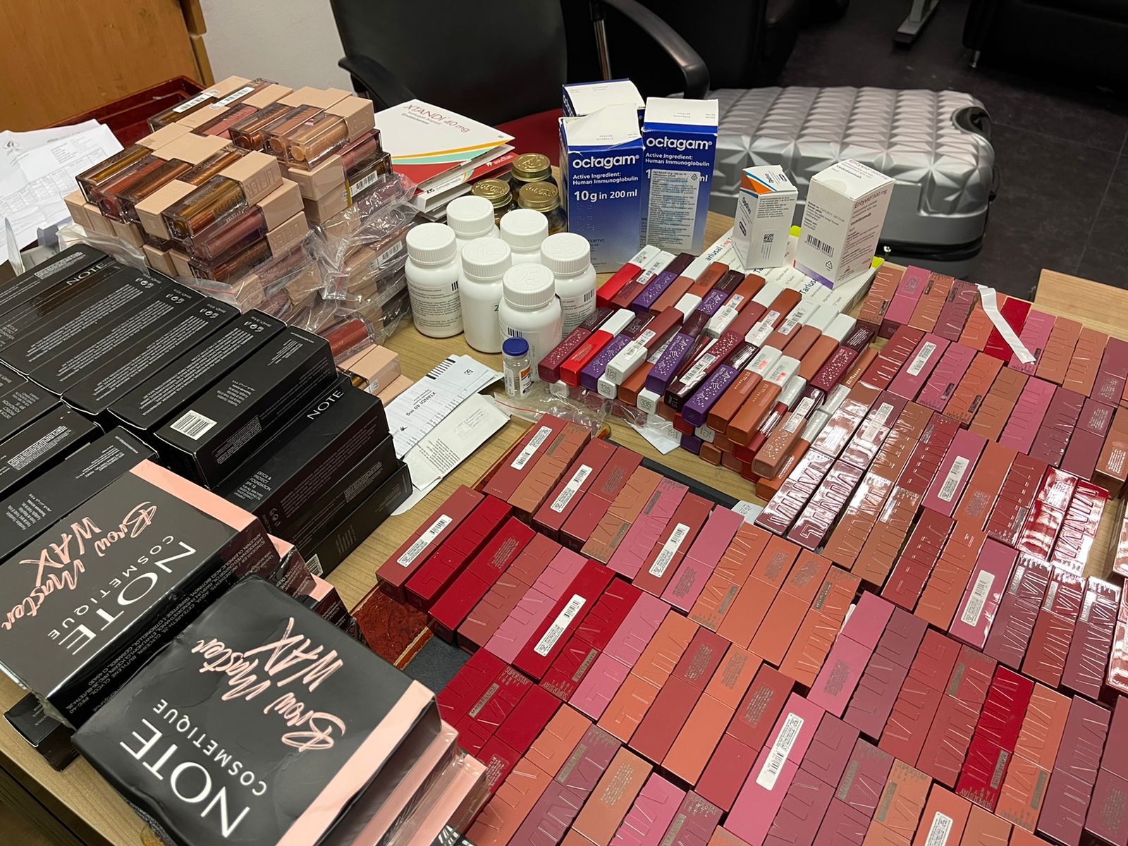 أحبطت سلطات جمارك مطار القاهرة الدولي محاولة راكبة مصرية تهريب كمية كبيرة من مستحضرات التجميل وبعض الادوية.
