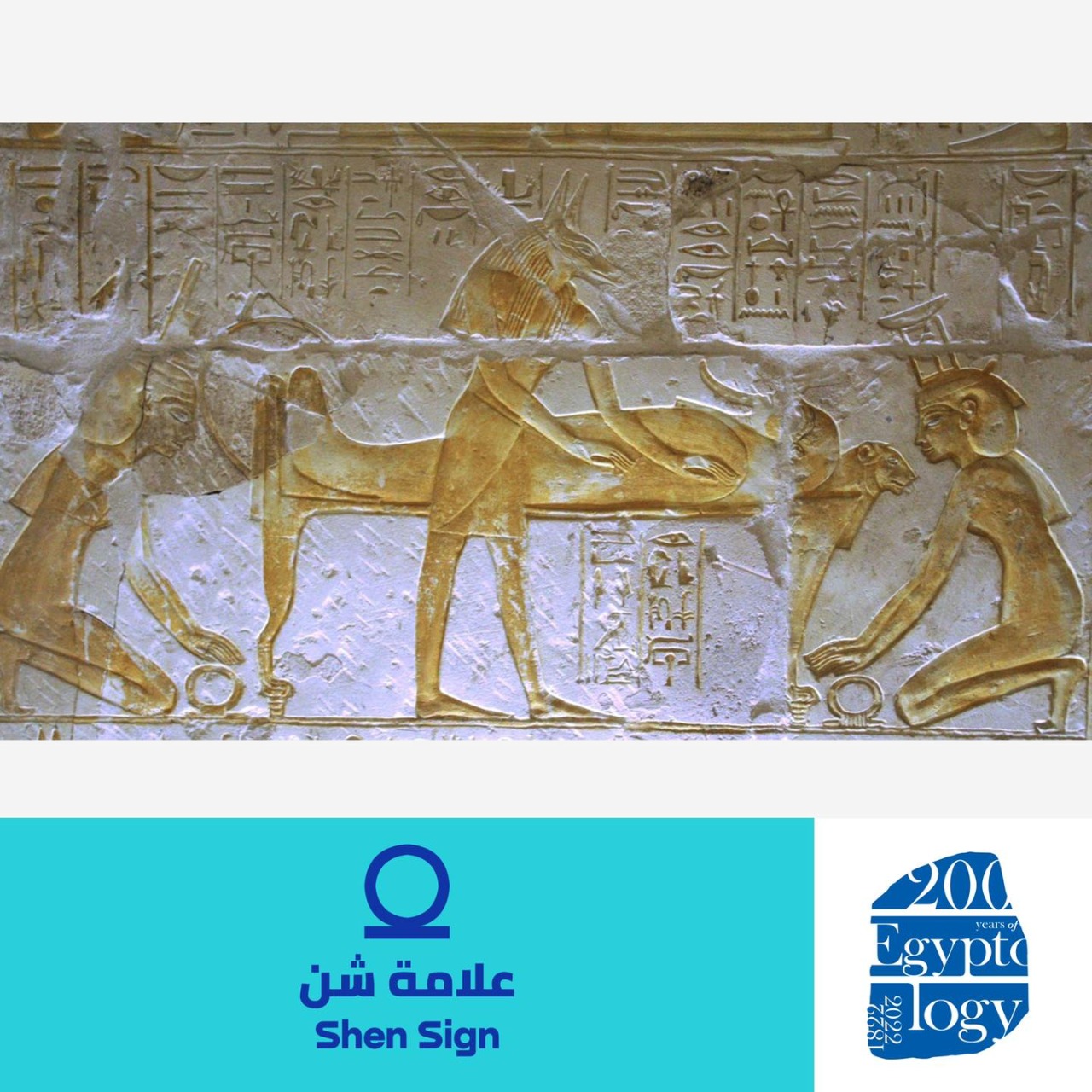 وُردت هذه العلامة ضمن عدد من الكلمات مثل "شِنس" التي تمثل خبز مستدير الشكل، و"شنو" أي خرطوش، كما كُتبت كرمز حماية في مناظر المعابد، وصُورت هنا تحت أيدي كل من إيزيس ونفتيس اللتين تركعان عند رأس وقدمي المتوفى.
