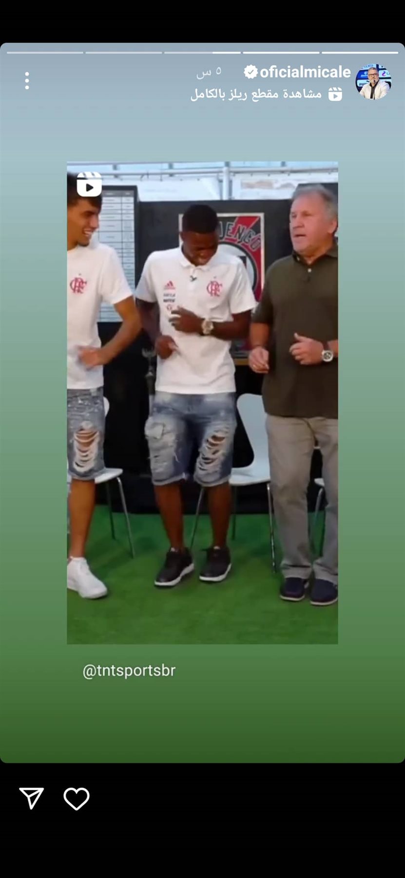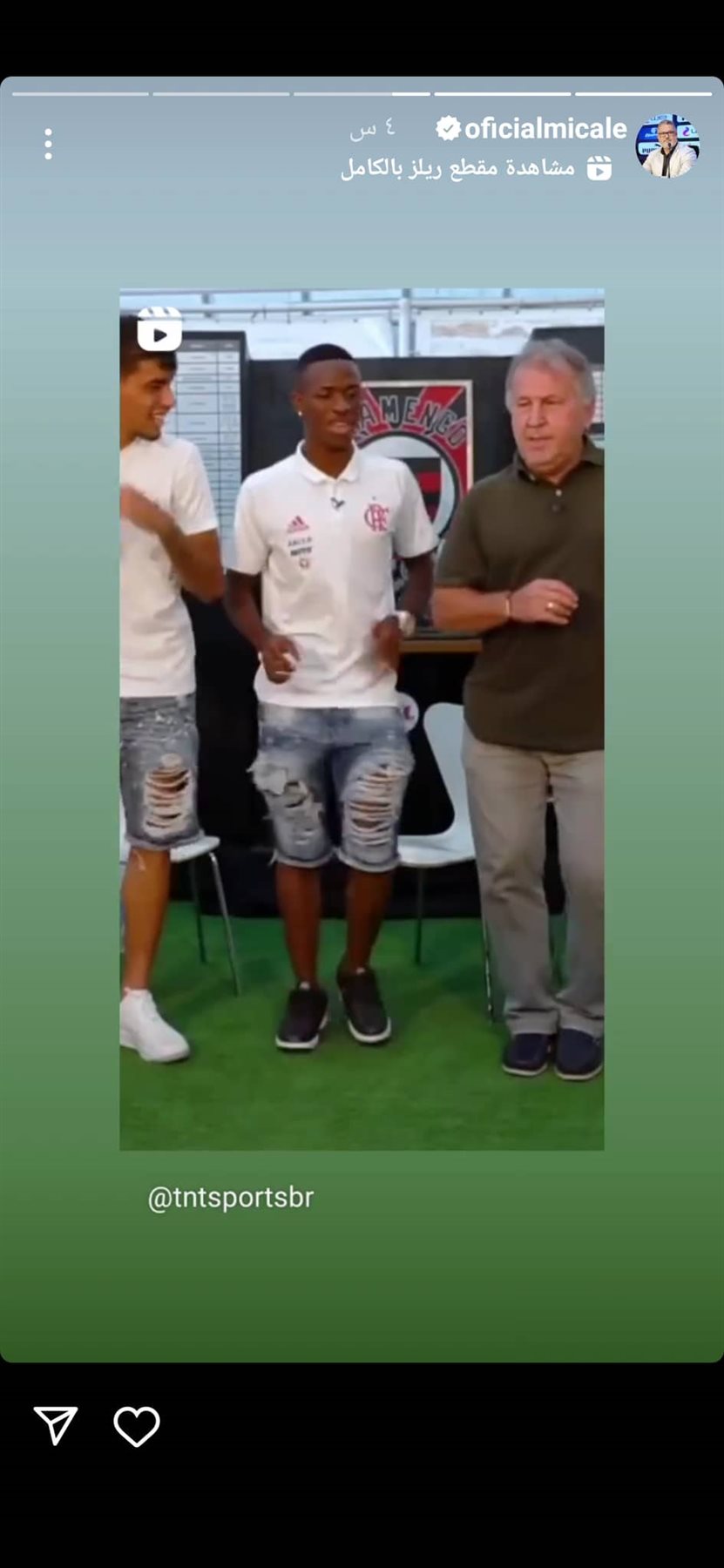 ونشر ميكالي ستوري عبر صفحته الرسمية فيديو لفينسيوس وهو يرقص بطريقته الخاصة، مشيرا إلى دعمه أمام تصريحات قائد أتليتكو مدريد