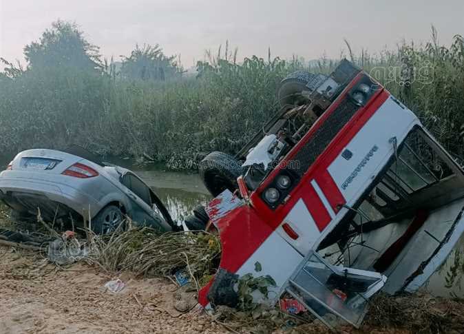 اللقطات الأولى لحادث تصادم أتوبيس وسيارة ملاكي بالشرقية | صور
