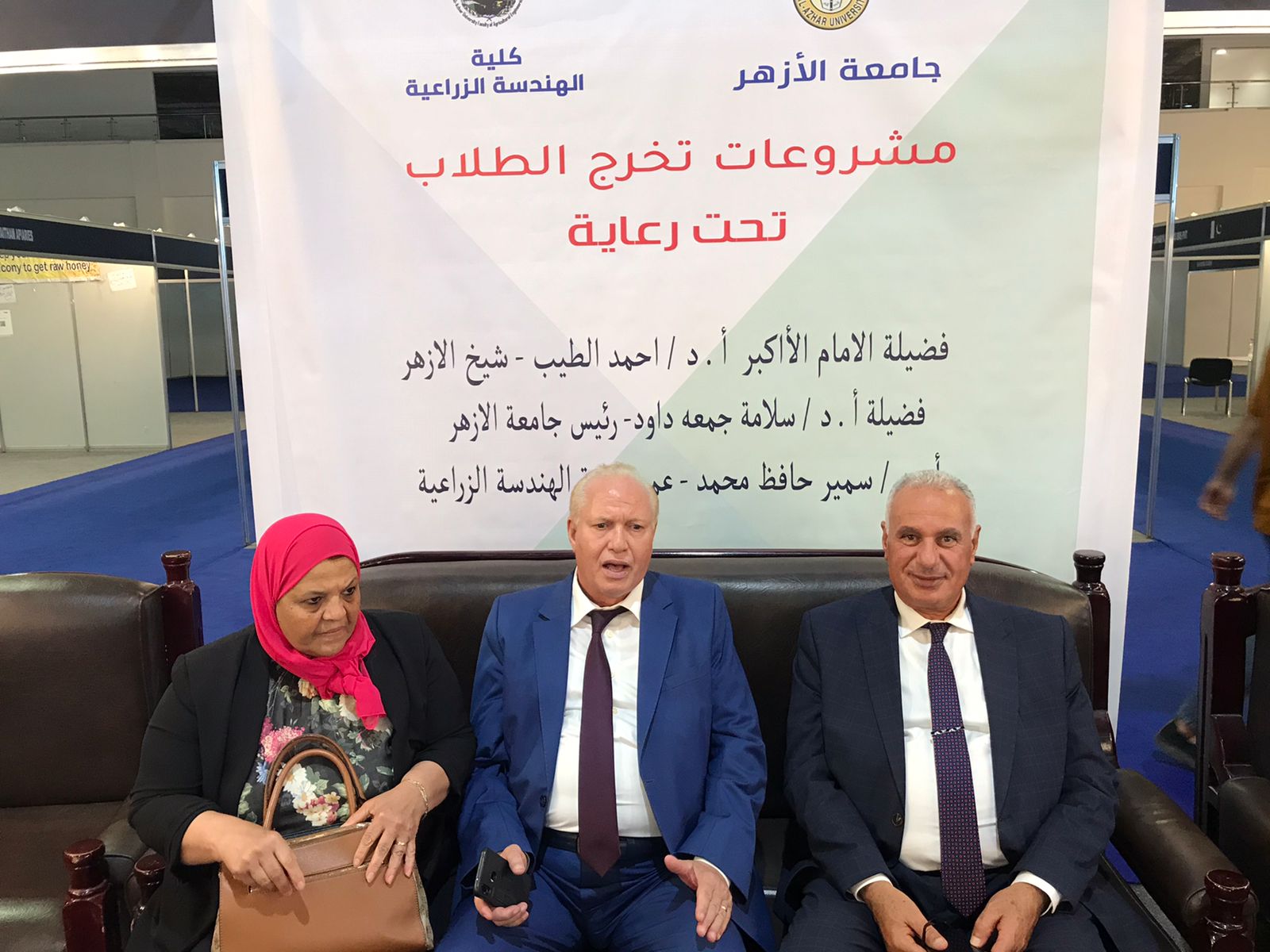 واشار إلى أن هذه المشاريع تعد إضافة قوية لمسيرة التنمية الشاملة التي تشهدها مصرنا الحبيبة، وفي ختام زيارته للمعرض قام الدكتور سمير حافظ، عميد كلية الهندسة بنين جامعة الأزهر بالقاهرة، بتكريم الدكتور محمود صديق، نائب رئيس الجامعة للدراسات العليا والبحوث، والدكتور حسين أبو الغيط، عميد كلية الطب، موجهًا لهما خالص الشكر والتقدير لزيارتهما ودعمهما لكلية الهندسة الزراعية بحامعة الأزهر تلك الكلية الفريدة من نوعها في مصر والشرق الأوسط.