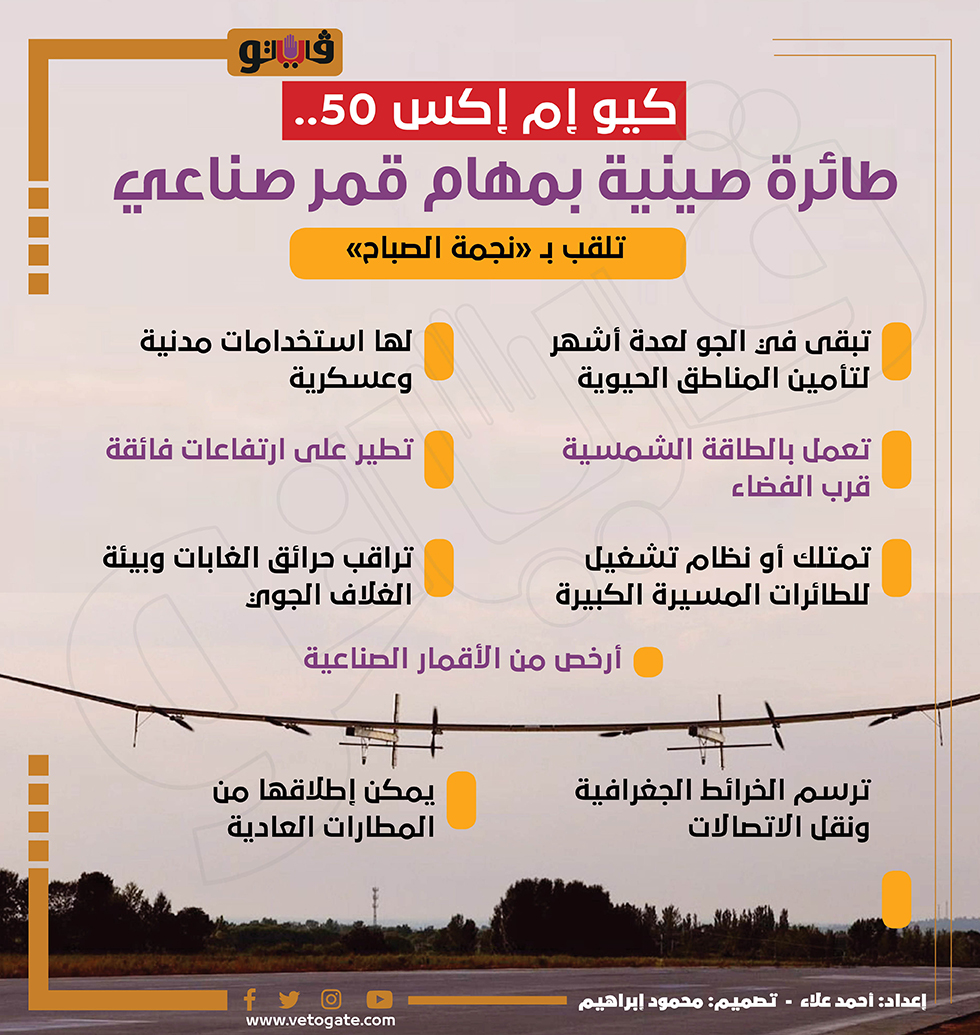 كيو إم إكس 50.. طائرة صينية بمهام قمر صناعي | إنفوجراف السبت 17/سبتمبر/2022 - 06:20 م 9/17/2022 6:20:35 PM نجمة الصباح احمد علاء شارك طباعة 18 حجم الخط شارك طباعة كيو إم إكس 50 نجمة الصباح الطاقة الشمسية طائرة بدون طيار طائرة مسيرة الصين