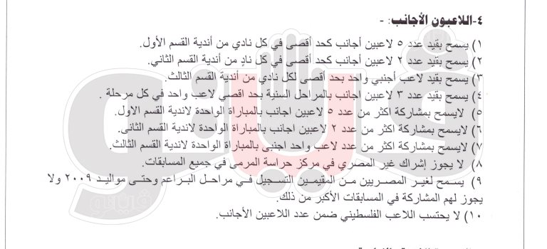 وتأتي باقي بنود لائحة اللاعبين الأجانب في مسابقات الموسم الجديد على النحو التالي: