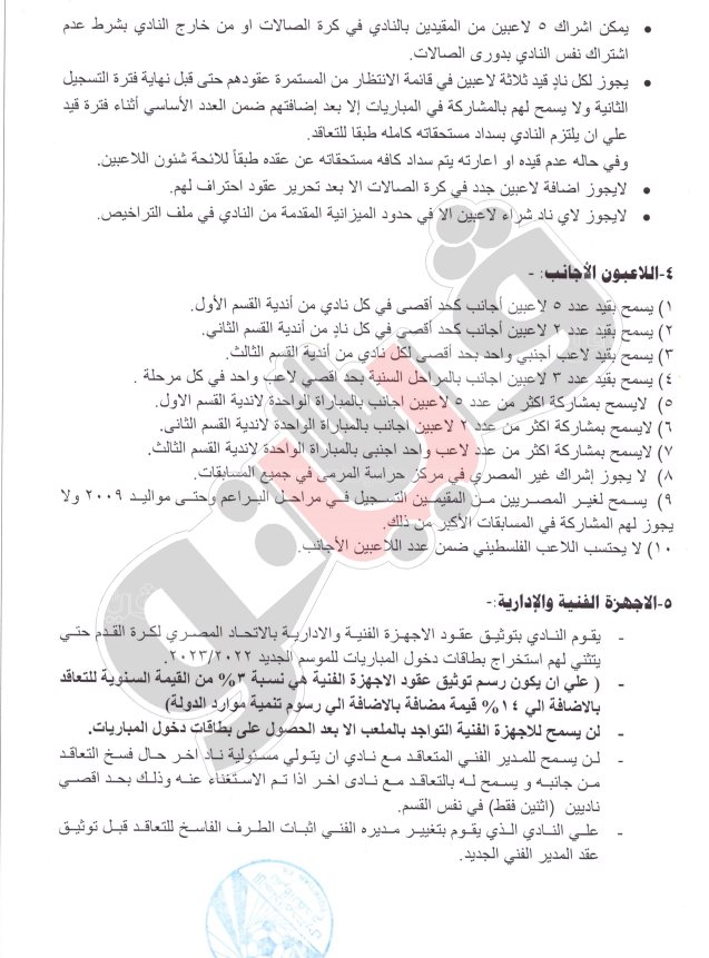 ** لا يسمح بمشاركة أكثر من 2 لاعبين أجانب بالمباراة الواحدة لأندية القسم الثاني.