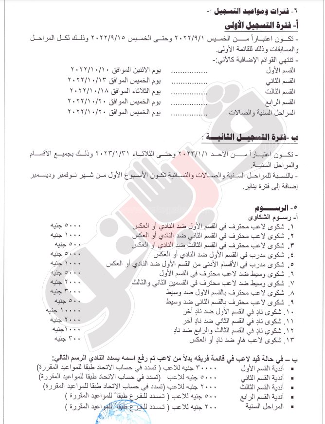 ننشر تفاصيل بنود لائحة القيد وانتقالات اللاعبين لجميع مسابقات اتحاد الكرة في الموسم الجديد | مستندات