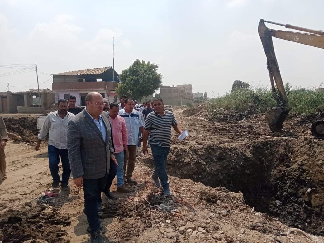 كما تفقد نائب المحافظ أعمال الدفع النفقي لمشروع الصرف الصحي بشارع المطحن بقرية ناهيا.