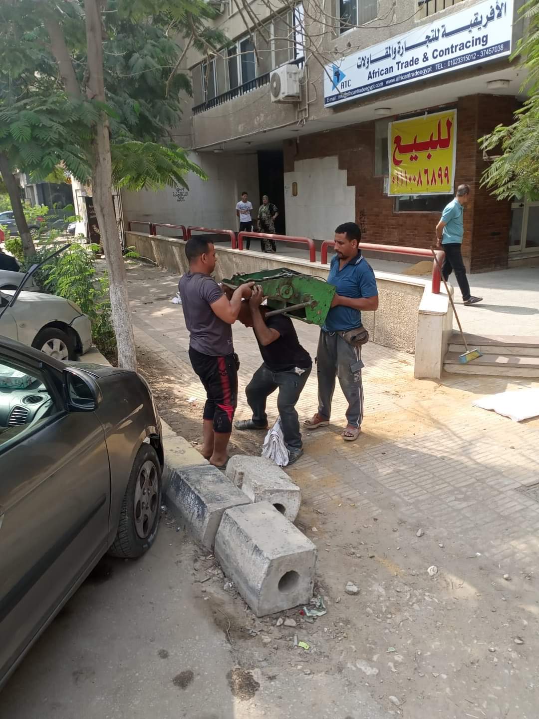 بالإضافة إلى رفع وإزالة جميع الحواجز الحديدية والأسمنتية لحجز اماكن الركنات وتم مصادرة حالات إشغال متنوعة والتحفظ على المضبوطات وإيداعها بمخزن الحي واتخاذ كافة الإجراءات القانونية حيال المخالفين بالإضافة إلى إيقاف أعمال بناء سور مخالف أعلى عقار بشارع عمار بن ياسر وتم إزالة السور وسحب المعدات كما تم سحب ونش بالكامل من المريوطيه فيصل واتخاذ كافة الإجراءات القانونية حيال المخالفين.