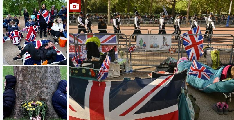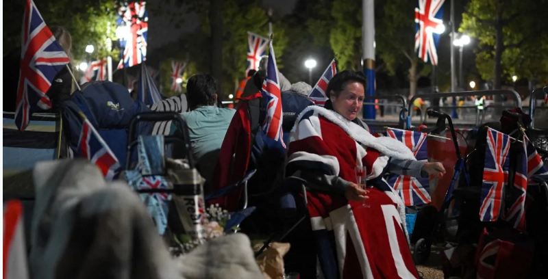 خيم آلاف الأشخاص منذ امس الأحد في شوارع لندن للحصول على أفضل المواقع لمشاهدة موكب جنازة الملكة إليزابيث المقررة اليوم الاثنين.