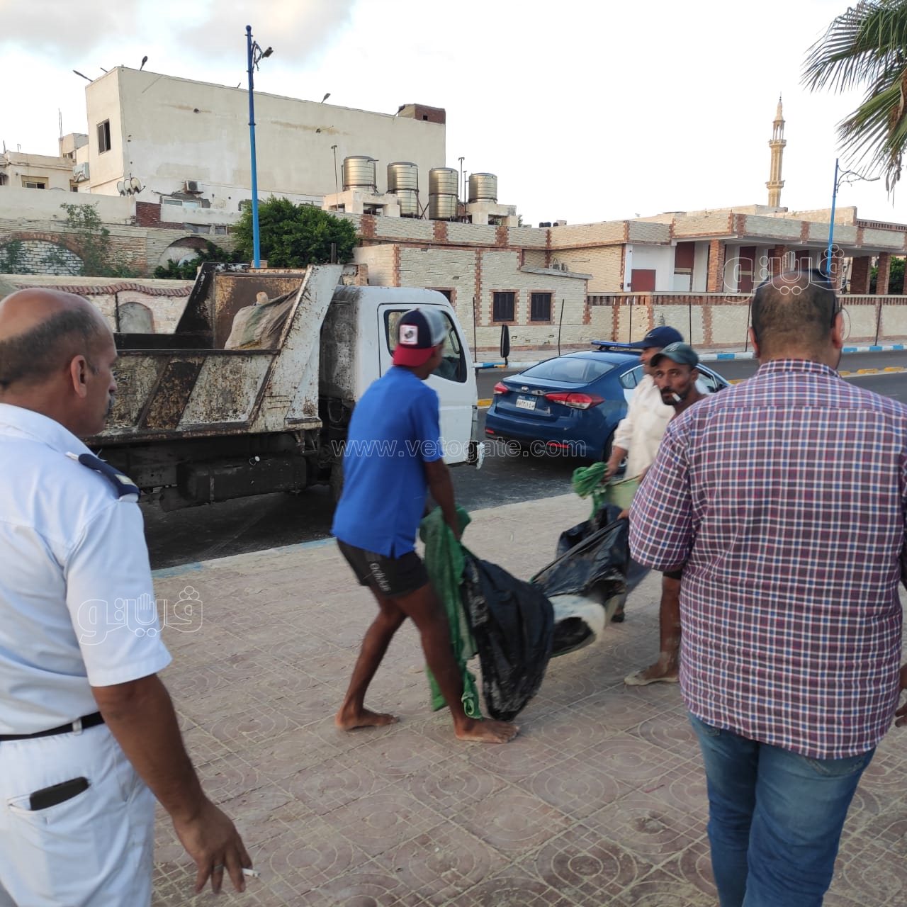 وحصلت “فيتو” على صورة للحظة نقل الدولفين من قبل عمال مجلس ومدينة مرسى مطروح، عن طريق سيارة نقل تحت اشراف رجال الشرطة ومسئولي مجلس ومدينة مرسى مطروح.