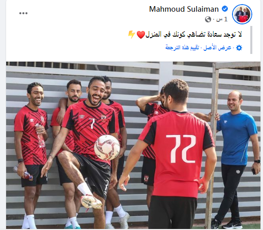 ونشر محمود عبد المنعم كهربا لاعب الأهلي عبر صفحته الشخصية بموقع التواصل الاجتماعي فيس بوك صورة أثناء مشاركته في تدريبات القلعة الحمراء، وعلق عليها قائلًا: “لا توجد سعادة تضاهي كونك في المنزل”.