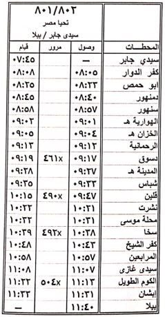 9- امتداد مسير قطار 883 ( بيلا / سيدى جابر ) إلى محطة سيدى جابر بدلًا من محطة دمنهور طبقًا للجدول المرفق.