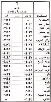 8- قيام قطار 2 (الإسكندرية / القاهرة) من محطة الإسكندرية الساعة 2:25 وفقًا للجدول المرفق بنفس التركيب الحالى .