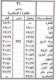 8- امتداد مسير قطار 31 ( القاهرة / الإسكندرية ) إلى محطة الاسكندرية بدلًا من محطة دمنهور طبقًا للجدول المرفق.
