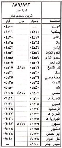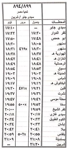 10- قيام قطار 894 (سيدى جابر – شربين) من محطة سيدى جابر الساعة 17:10 وفقًا للجدول المرفق بنفس تركيب العربات الحالي.