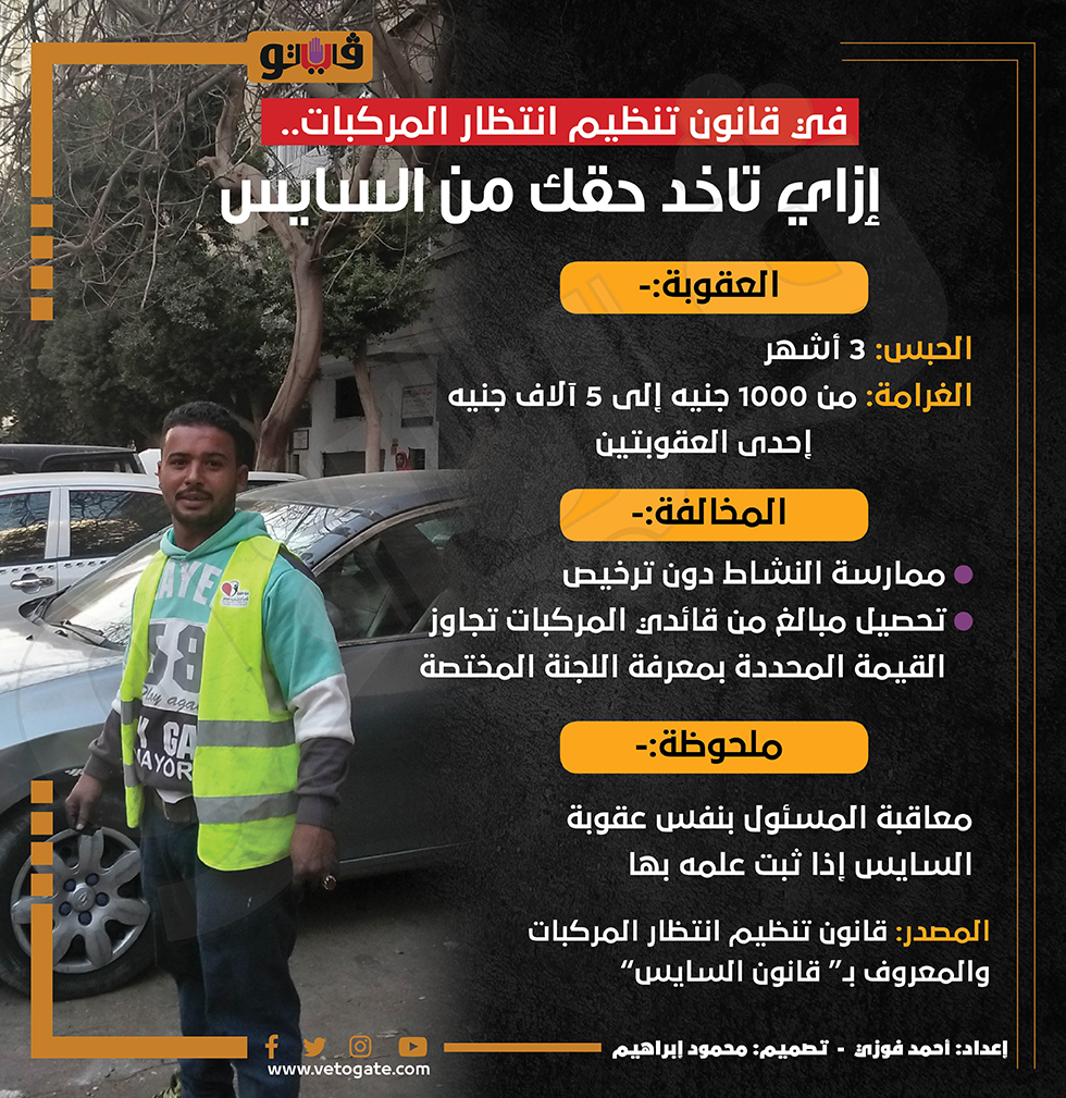 في قانون تنظیم انتظار المركبات.. إزاي تاخد حقك من السايس | إنفوجراف الثلاثاء 20/سبتمبر/2022 - 05:32 م 9/20/2022 5:32:58 PM احمد فوزي شارك طباعة 18 حجم الخط شارك طباعة