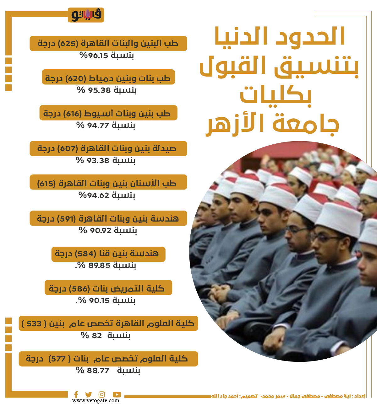 الحدود الدنيا بتنسيق القبول بكليات جامعة الأزهر 2022 - 2023 | انفوجراف الثلاثاء 20/سبتمبر/2022 - 12:26 م 9/20/2022 12:26:41 PM تنسيق جامعة الازهر 2022 أية مصطفى - مصطفى جمال - سمر محمد شارك طباعة 18 حجم الخط شارك طباعة جامعة الأزهر كليات جامعة الأزهر تنسيق جامعة الأزهر 2022 تنسيق الأزهر 2022