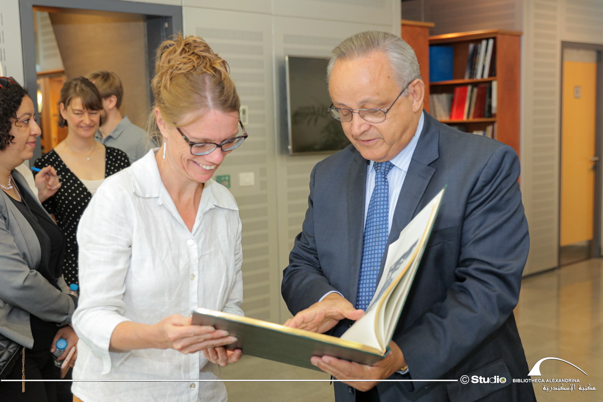 استقبل الدكتور أحمد زايد، مدير مكتبة الإسكندرية،الدكتورة إيلونا ريجولسكي، أمين قسم تاريخ الكتابة بالمتحف البريطاني، والوفد الصحفي المرافق لها والمكون من فريق الاتصالات والإعلام من المتحف البريطاني، بالإضافة إلى صحفيين من صحيفة الجارديان، وصحيفة الايفينج ستاندرد Evening Standard والأكسبرس Express..