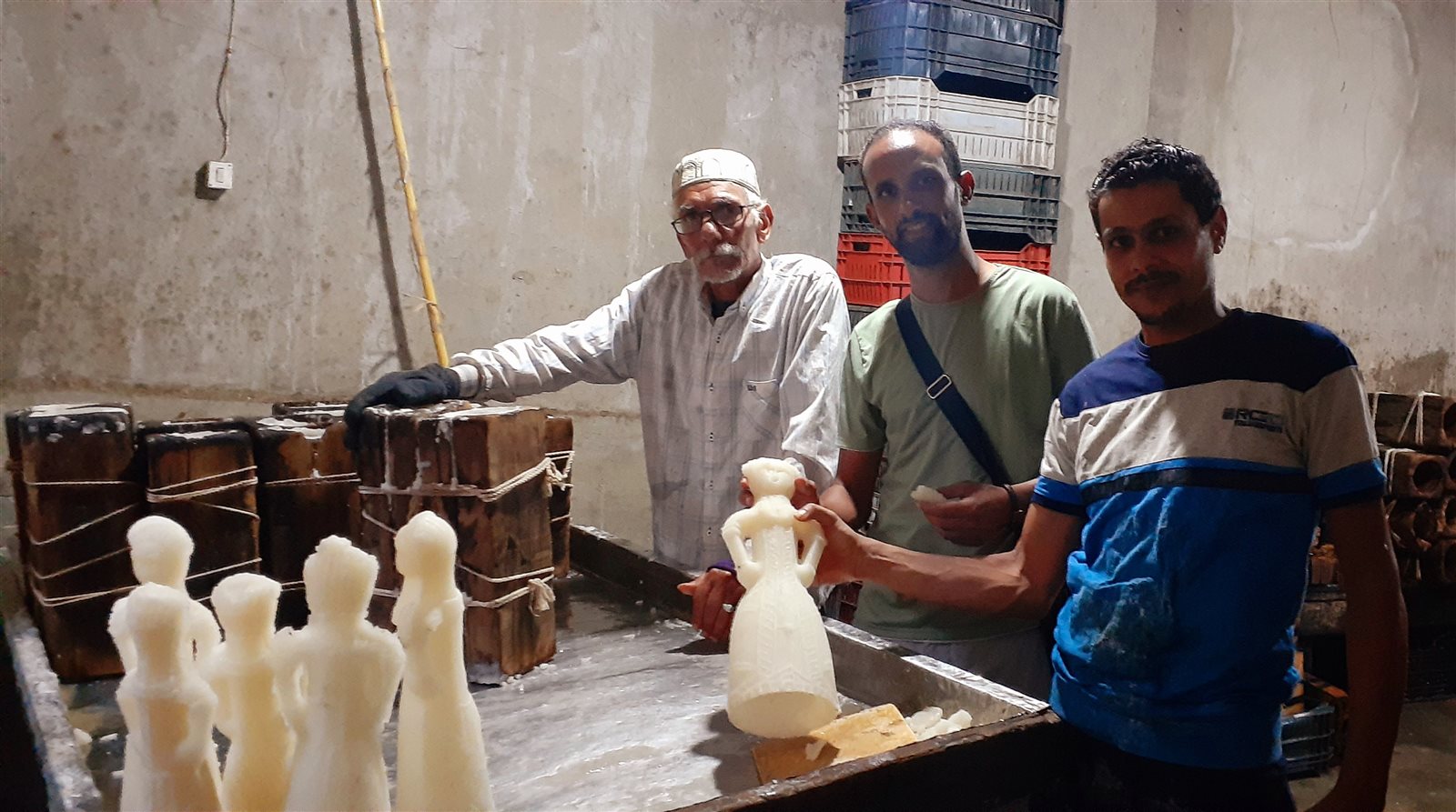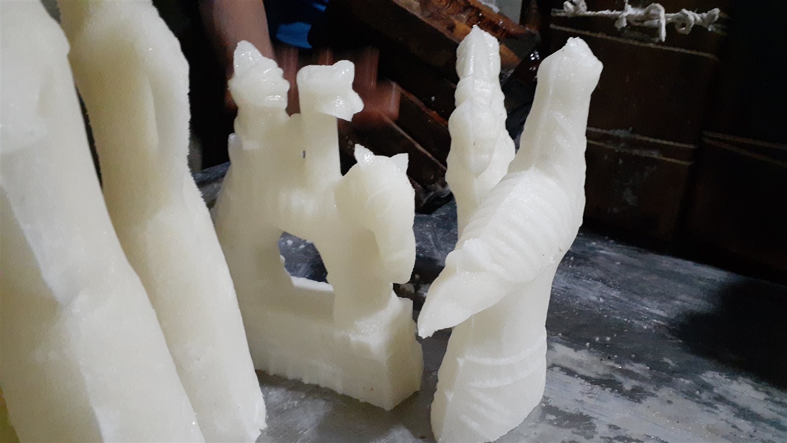 عم ربيع أكد أن بعد ذلك تأتي المرحلة الثانية وهى صب الماء والسكر بعد وصولهما لمرحلة الذوبان في قوالب خشبية ذات أشكال متعددة أهمها "العروسة" و"الحصان" ويتم ترك هذا المحتوى حتى يجف ويصبح صلبًا.