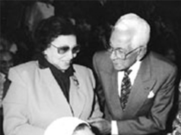 الصورة تجمع بين بابا شارو وزوجته صفية المهندس وشقيقها فؤاد المهندس وسعاد حسنى وشريهان كرموز لاكتشاف بابا شارو الفنية..