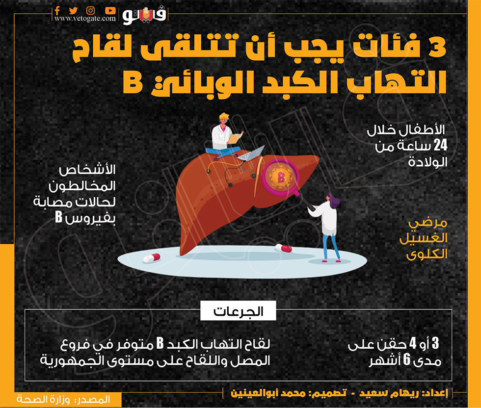 3 فئات يجب أن تتلقى لقاح التهاب الكبد الوبائي B| انفوجراف الجمعة 23/سبتمبر/2022 - 08:59 م 9/23/2022 8:59:42 PM تطعيم التهاب الكبد ب ريهام سعيد شارك طباعة 18 حجم الخط شارك طباعة التهاب الكبد B المصل واللقاح الغسيل الكلوي مرضي الغسيل الكلوي وزارة الصحة