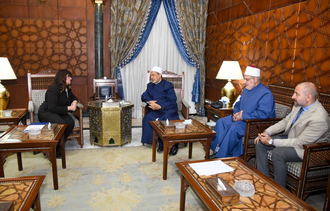 استقبل الإمام الأكبر د. أحمد الطيب، شيخ الأزهر الشريف، السفيرة سها جندي، وزيرة الدولة للهجرة وشئون المصريين بالخارج، لتعزيز التعاون في التواصل مع المصريين بالخارج، وتعزيز ارتباطهم ببلدهم ومؤسساته الوطنية وفي مقدمته الأزهر الشريف وما يمثله علماؤه من منارة للعلوم الدينية الإسلامية وذلك بحضور السفير عمرو عباس، مساعد وزير الهجرة لشئون الجاليات، ود. محمد الضويني، وكيل الأزهر الشريف.