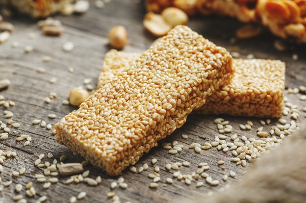 - يضاف الشربات على السمسم بحيث أن يكون كافي للتغطية وللتماسك ويقلب.