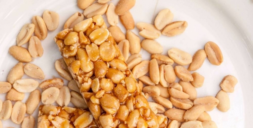 - بعدها نحضر صينية مدهونة زيت غير لاصقة، ونفرد عليها الفول السودانى ونقطعه وهو ساخن، ثم نتركه ليبرد تمامًا، ثم نكسره ونقدمه.