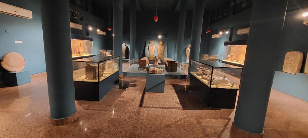 ومن جانبه قال مؤمن عثمان رئيس قطاع المتاحف، أن المتحف يضم 950 قطعة أثرية، من أبرزها تمثال مزدوج لـ ”بيبي عنخ إيب“ مصنوع من الحجر الجيري الملون يرجع إلى عصر الأسرة السادسة الدولة القديمة، وتمثال لإحدى بنات الملك أخناتون تم اكتشافه في تل العمارنة، وتابوت من الخشب المذهب يرجع إلى العصر المتأخر، ومجموعة من الأواني الكانوبية لحفظ أحشاء المتوفى. كما يحتوي على مصحف مكتوب بالمداد الأسود، من العصر الإسلامي، يرجع إلى عام 1292هـ، ومن الفن القبطي يعرض المتحف أيقونة تمثل السيدة العذراء وهي تحمل السيد المسيح عليه السلام.