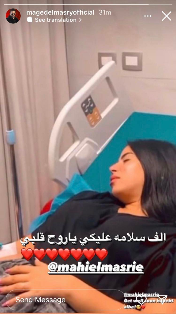 ونشر الفنان ماجد المصري صورة لـ ابنته “ماهيتاب” في المستشفى ، وذلك من خلال خاصية “الأستوري” عبر موقع تبادل الصور والفيديوهات “إنستجرام” معلقا:"ألف سلامة عليكي يا روح قلبي.