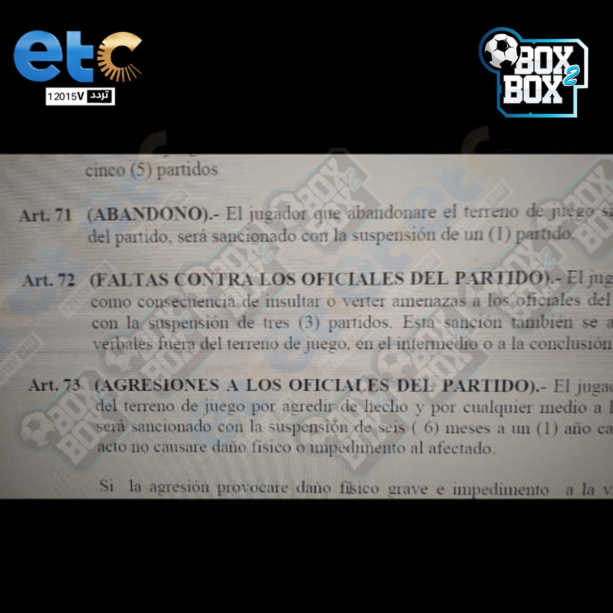 وأتم شبانة: تأكدنا من اللائحة والمادة 73 من القوانين التأديبية للاتحاد البوليفي، والتي أشارت أن هذه الواقعة تتراوح عقوبتها من 6 أشهر إلى عام كامل.
