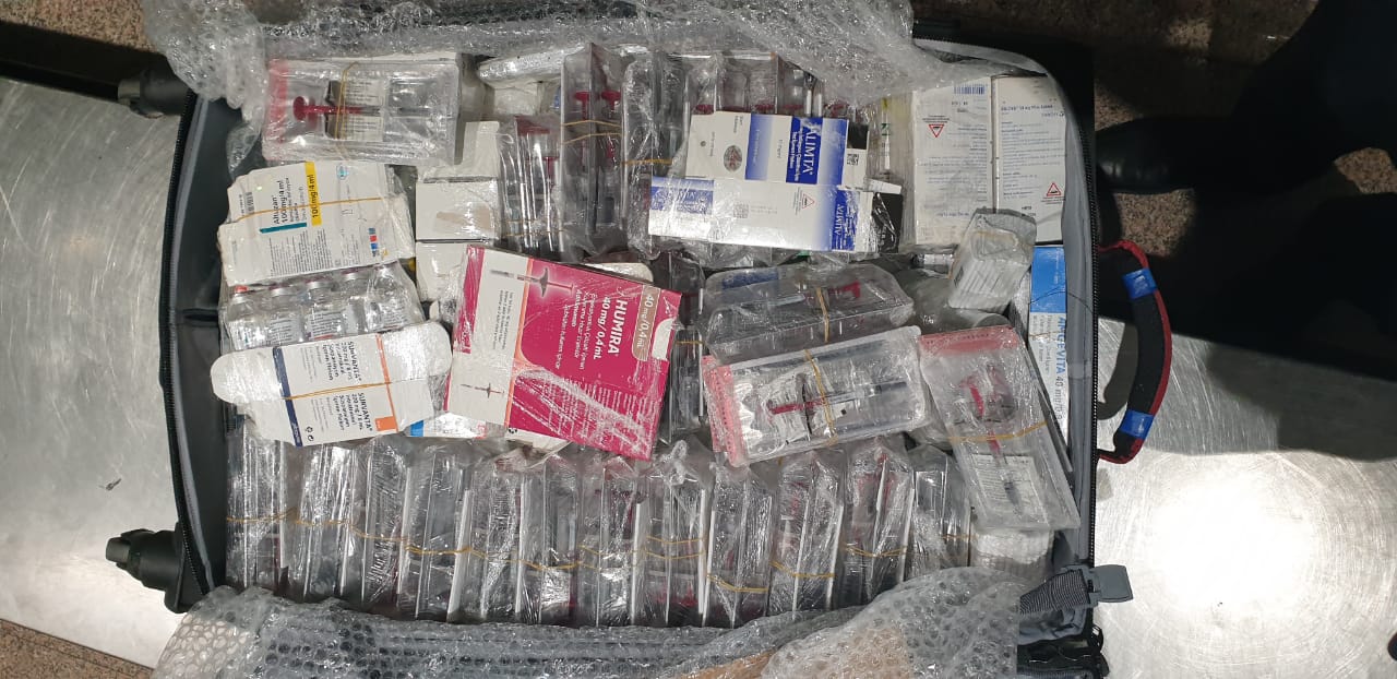 قام احمد علي السيد مدير الإدارة بتكليف اللجنة المذكورة بتفتيش حقائب الراكبة في وجود مأمور أمن الجمرك، مما أسفر عن ضبط ٧١٥ وحدة عبارة عن إمبولات وشرائط وزجاجات وعبوات دوائية غالية الثمن تقدر مبدئيا بعدة ملايين من الجنيهات.