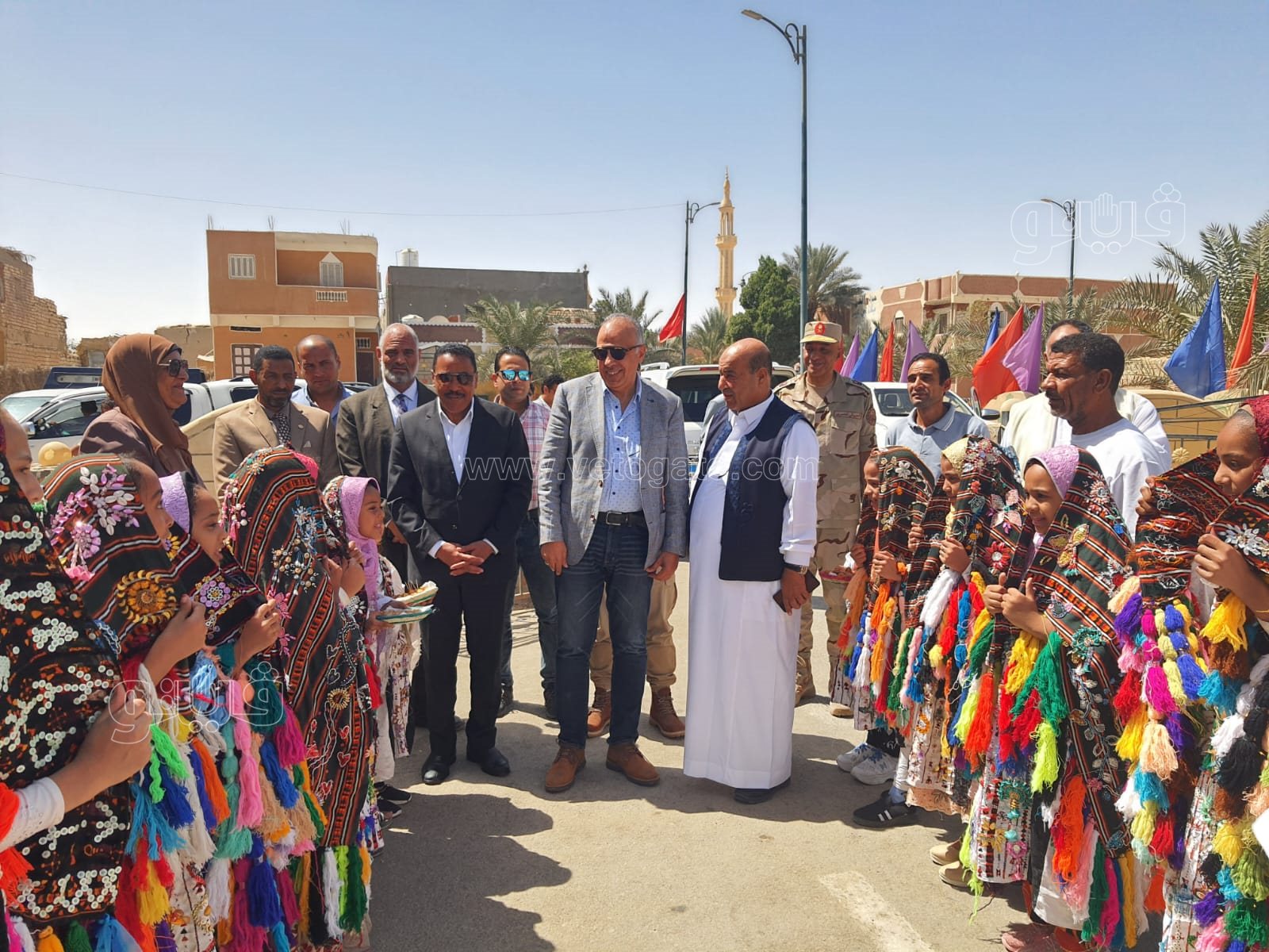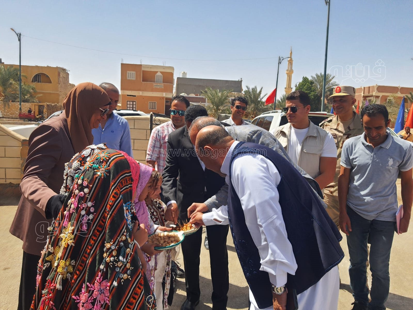 واستقبلت فتيات سيوة وزير الموارد المائية والري بالورود والتمور والأغاني ترحيبا وتعبيرا عن التراث السيوي احتفالا باستقبال محافظ مطروح ووزير الري.