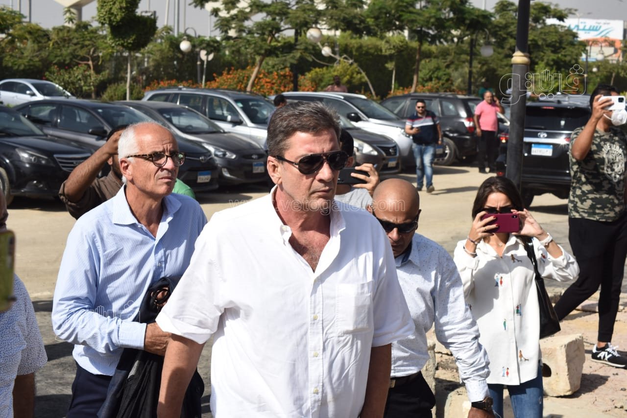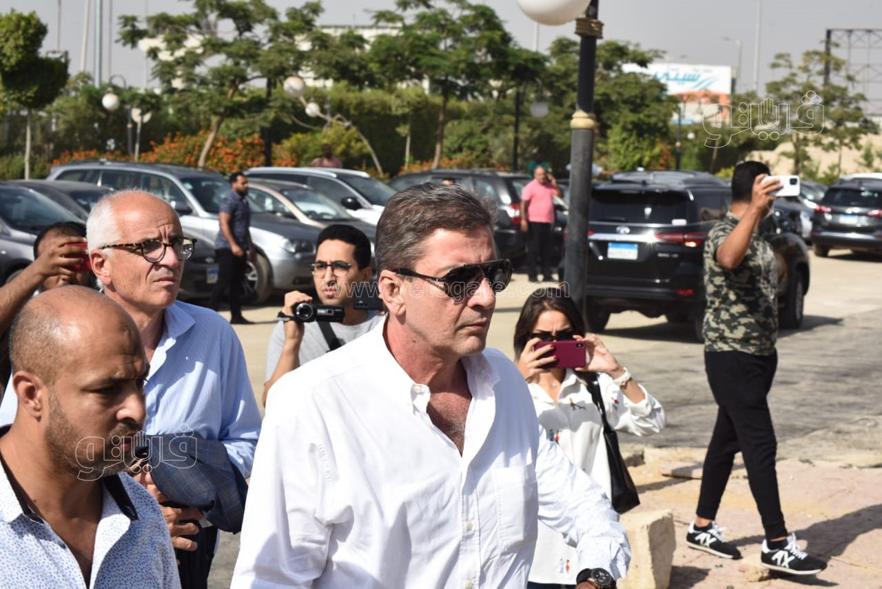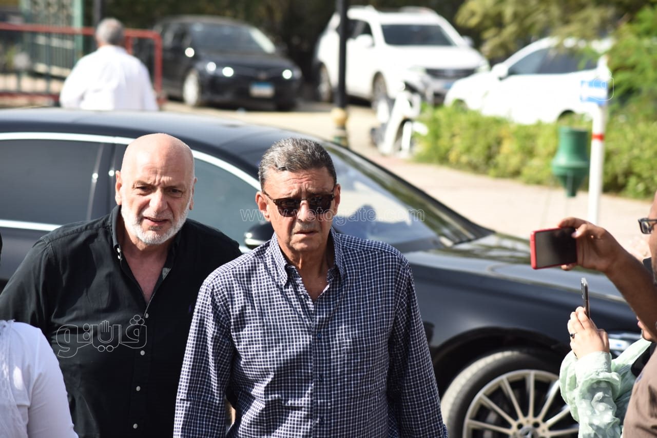 خالد وعمرو سليم يصلان مسجد الشرطة استعدادا لصلاة الجنازة على هشام سليم | فيديو
