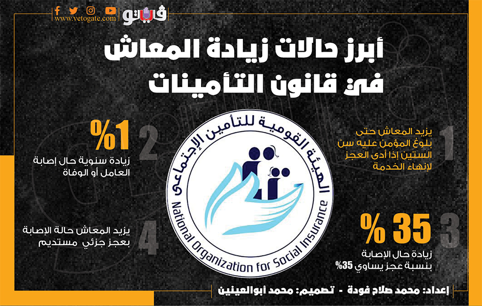 أبرز حالات زيادة المعاش في قانون التأمينات | إنفوجراف الجمعة 23/سبتمبر/2022 - 02:27 م 9/23/2022 2:27:46 PM صرف المعاشات - محمد صلاح فودة شارك طباعة 18 حجم الخط شارك طباعة اصابة العمل المؤمن علية قانون التأمينات زيادة المعاش