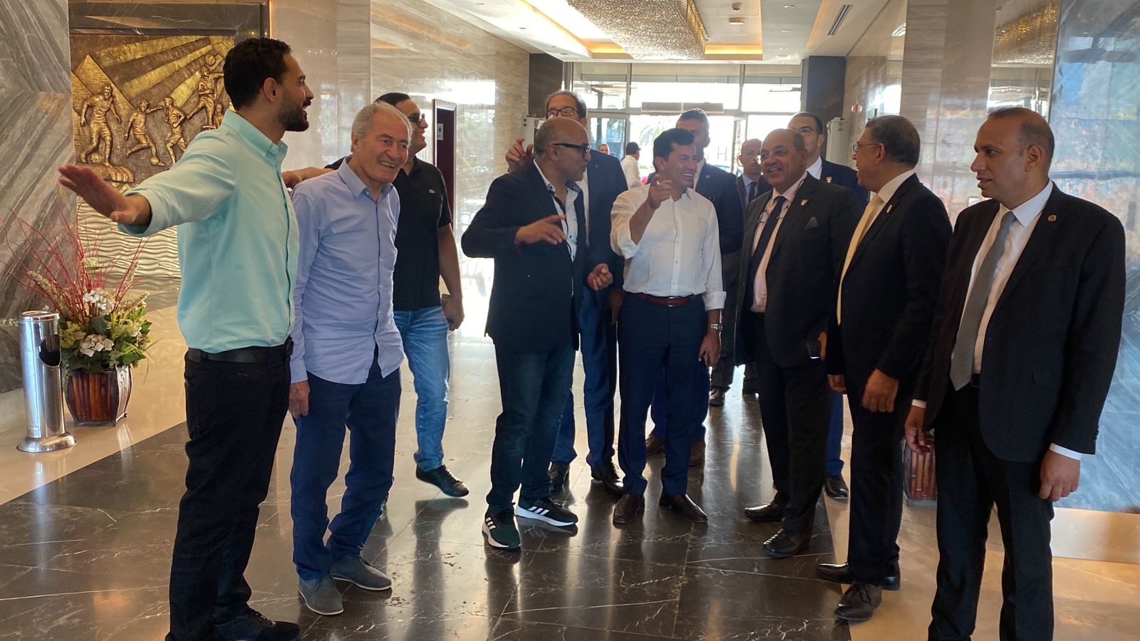 وتواجد في الجولة المهندس شريف العريان الأمين العام للجنة الأولمبية المصرية والدكتور الباسل عبدالله عضو مجلس إدارة اللجنة الأولمبية المصرية والمستشار محمد الدمرداش رئيس نادي الزهور.