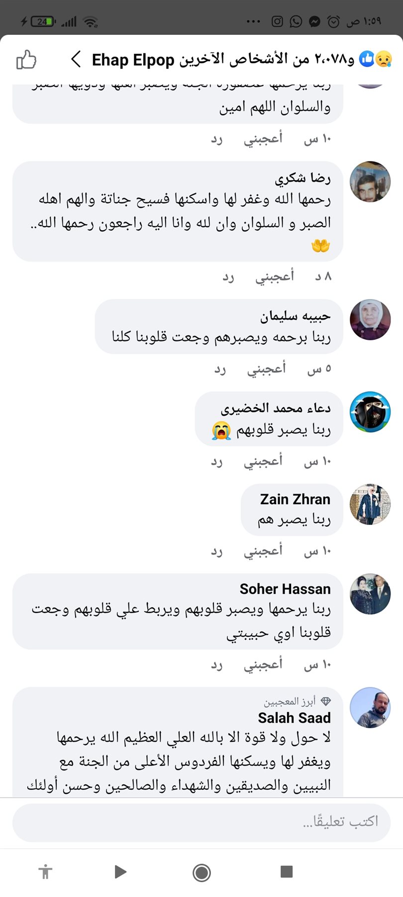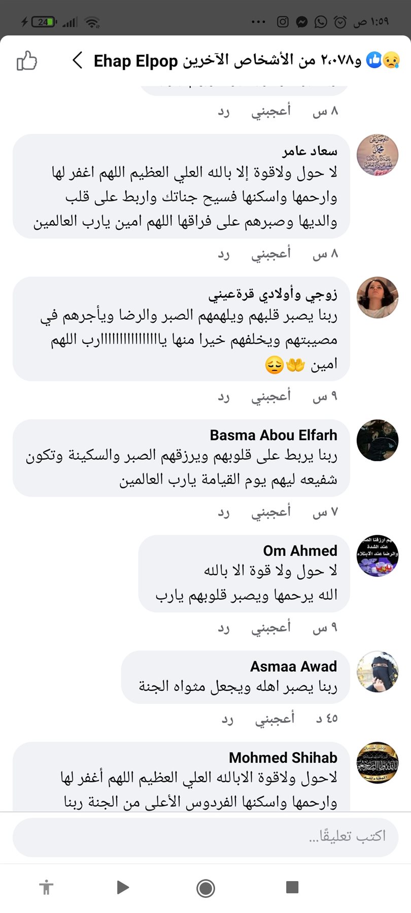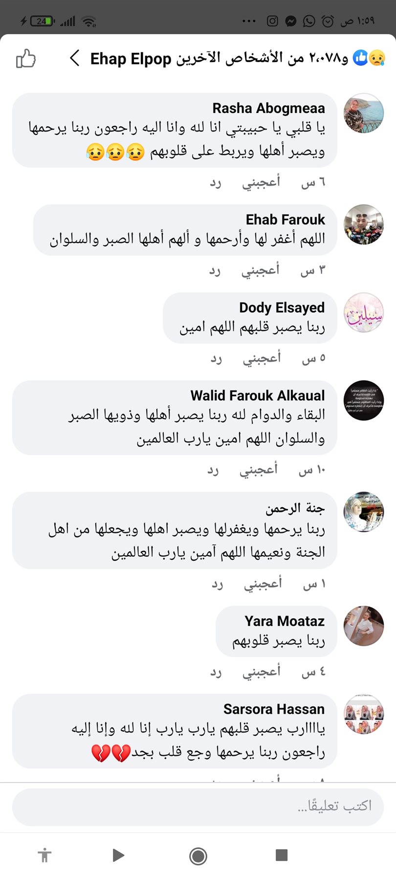 وتنوعت تعليقات المواطنين ما بين الصدمة من بشاعة الحادث المأساوي، وما بين الدعاء للطفلة الضحية بالرحمة، وما بين أيضًا الدعاء لأهلها أن يربط الله عز وجل على قلوبهم بالصبر.