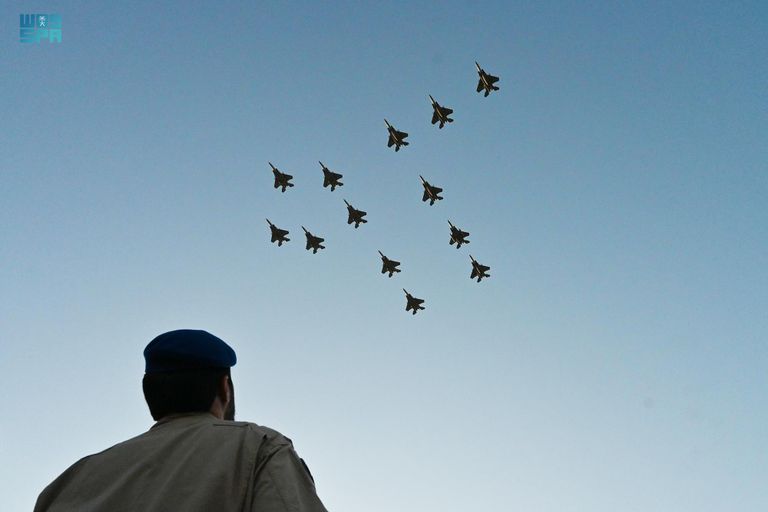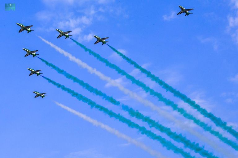 شهدت العاصمة السعودية أكبر استعراض جوي في تاريخ الأيام الوطنية بالمملكة، أقيم على مدى يومين شمال الرياض احتفالًا باليوم الوطني الـ92.