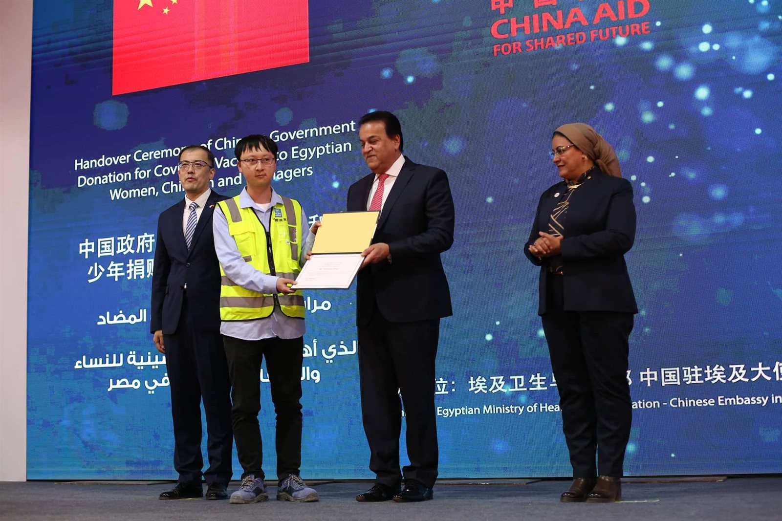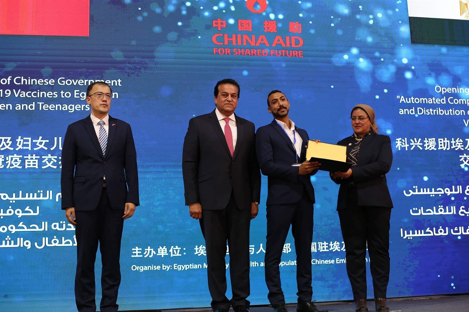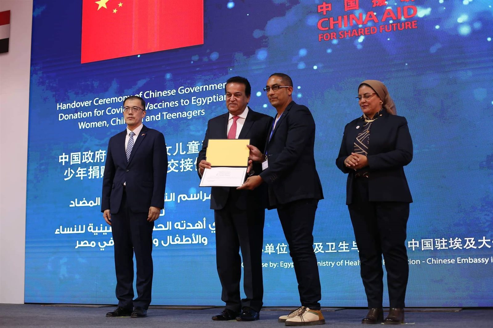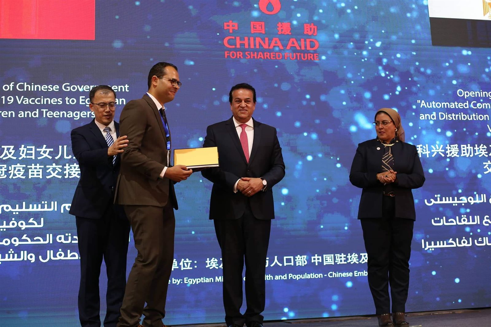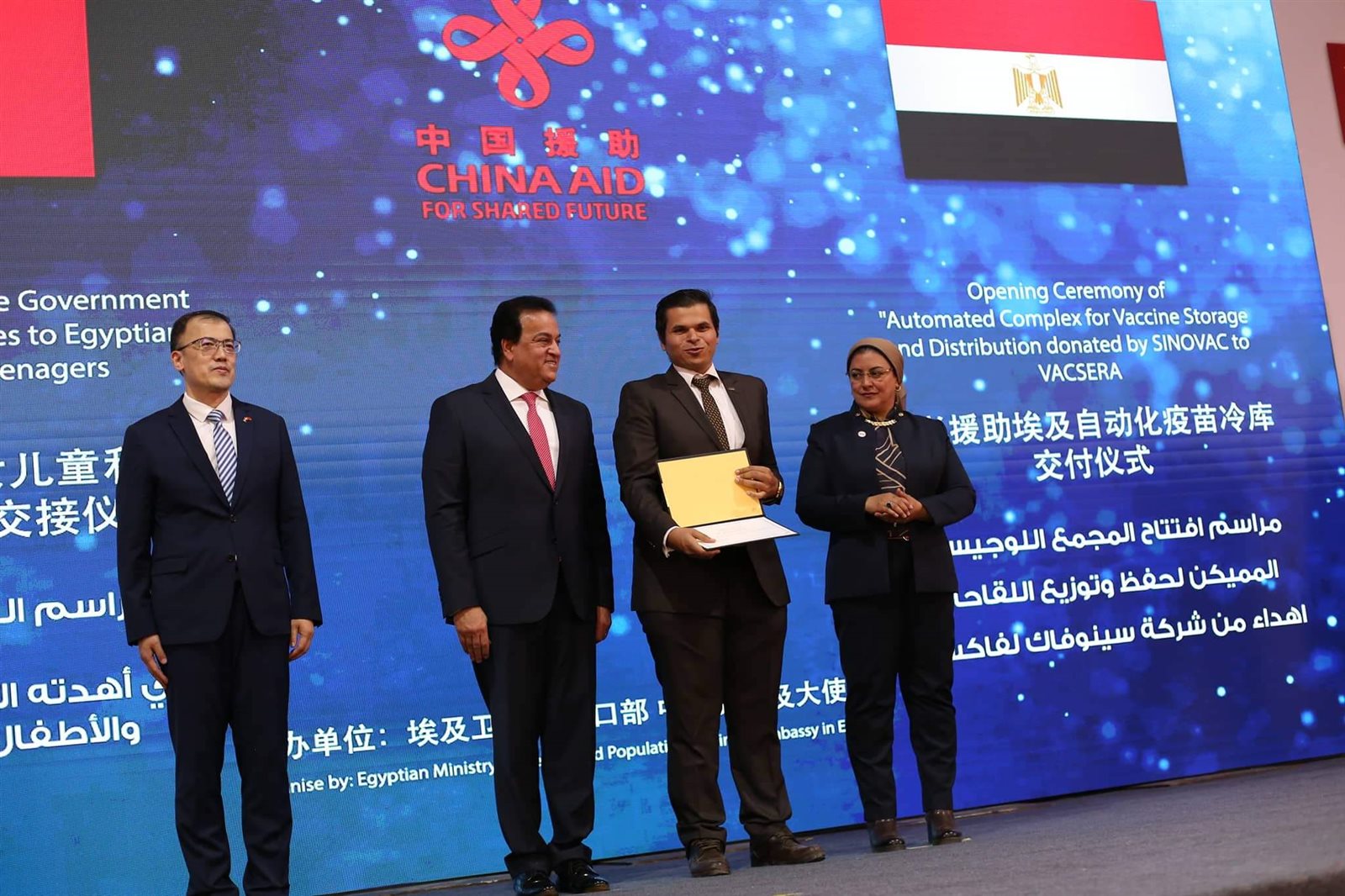 وشهد وزير الصحة والسكان، مراسم توقيع وثيقة استلام 10 ملايين جرعة من لقاح كورونا مقدمة من الحكومة الصينية، ضمن 60 مليون جرعة تهديها الحكومة الصينية للشعب المصري، حيث كشف الوزير أن مصر لديها مخزون من لقاحات فيروس كورونا يكفي حتى عام 2023.