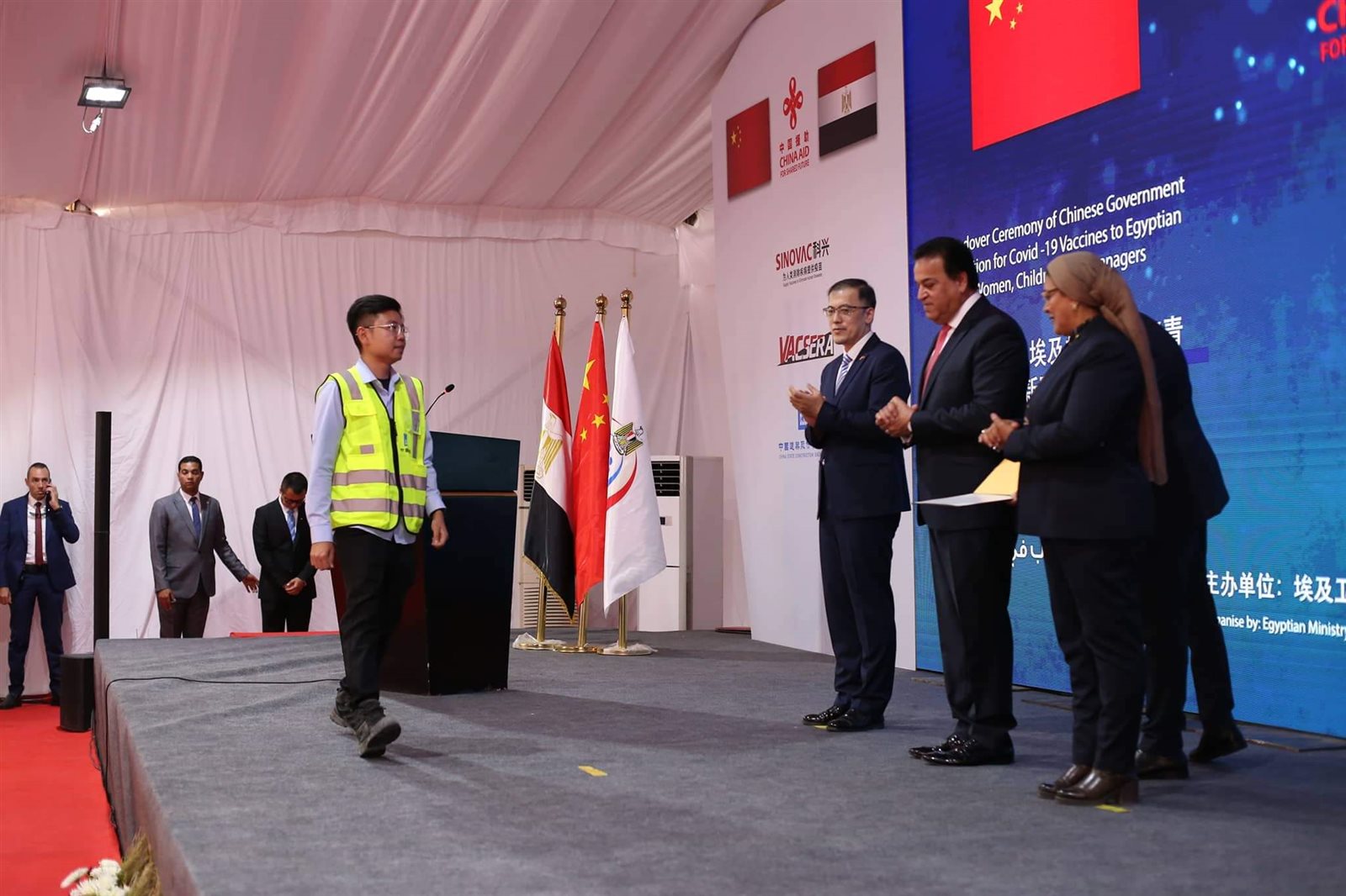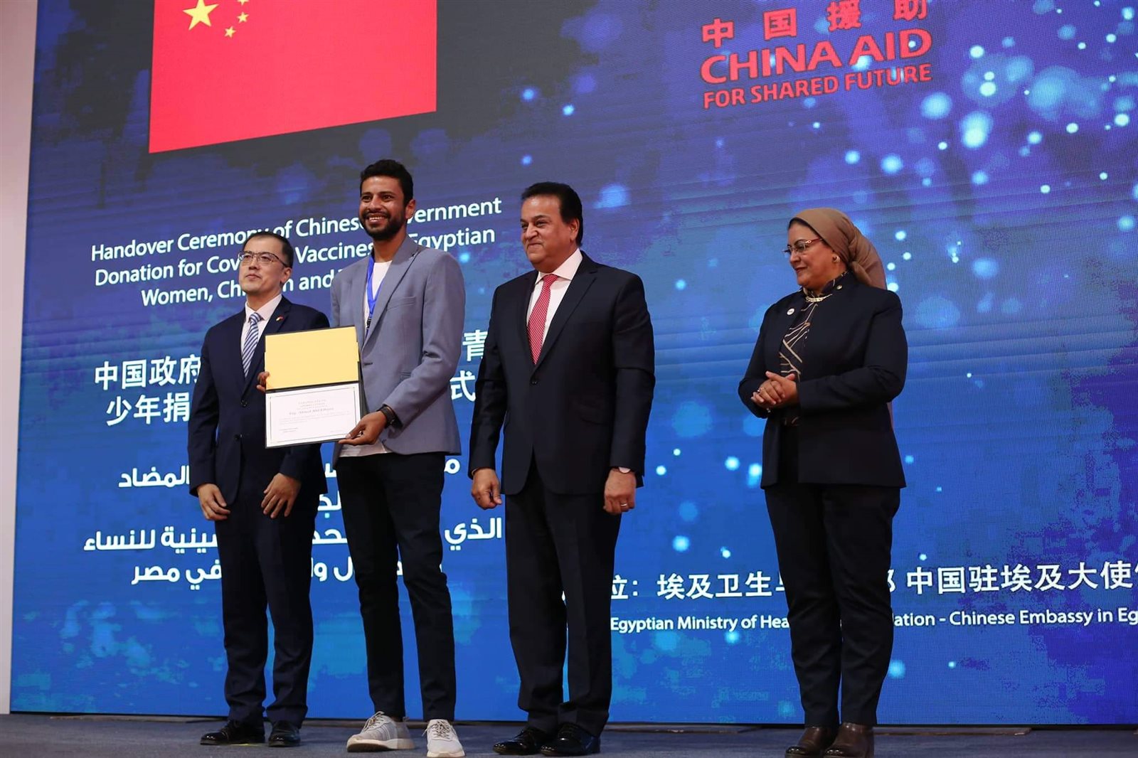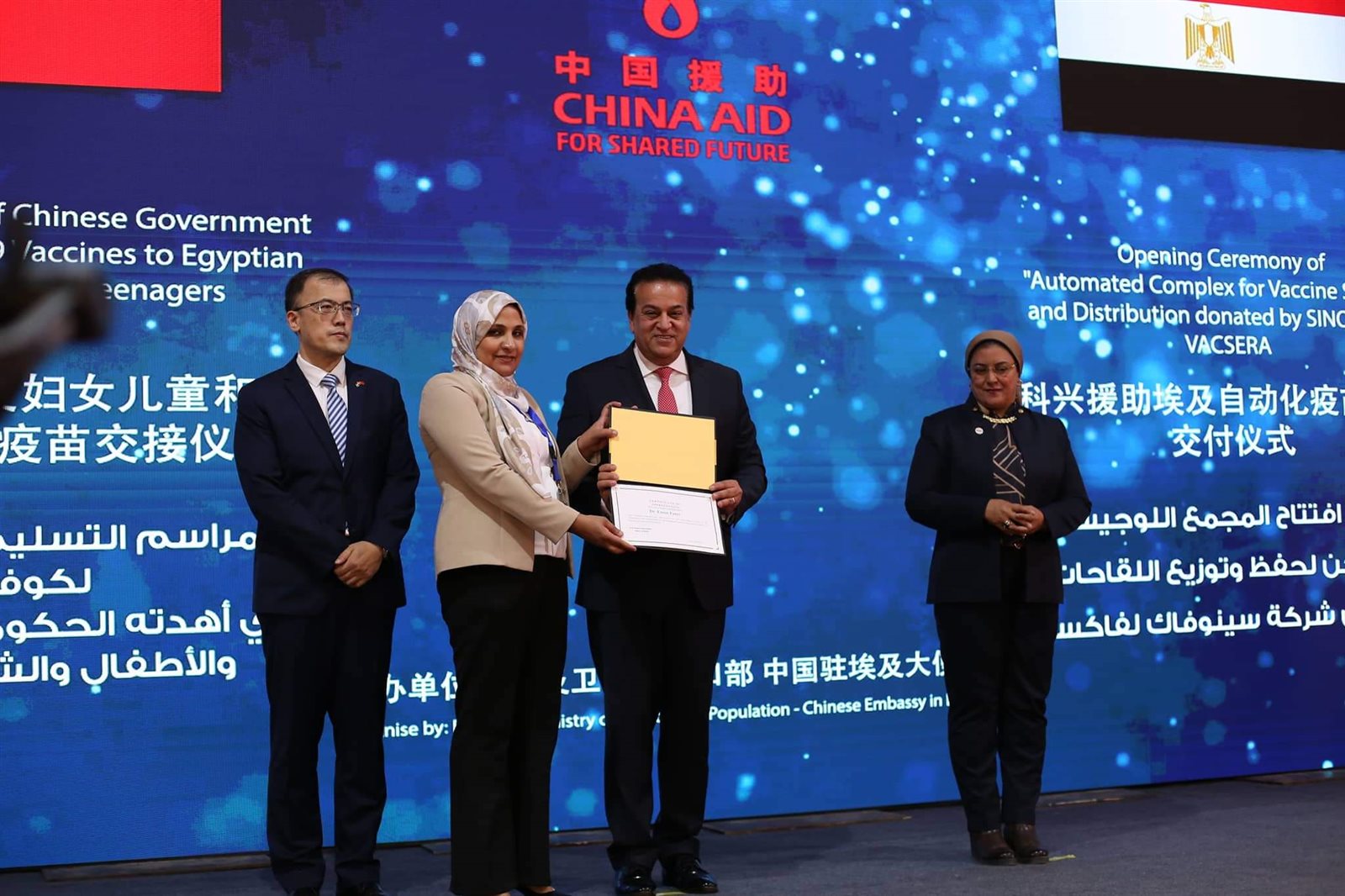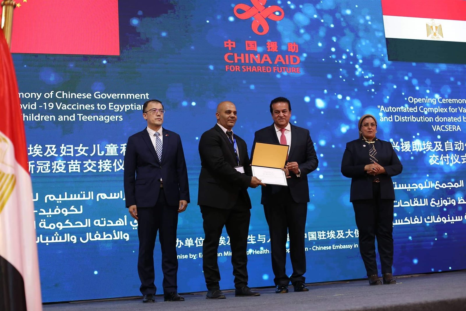 وشهد وزير الصحة والسكان، مراسم توقيع وثيقة استلام 10 ملايين جرعة من لقاح كورونا مقدمة من الحكومة الصينية، ضمن 60 مليون جرعة تهديها الحكومة الصينية للشعب المصري، حيث كشف الوزير أن مصر لديها مخزون من لقاحات فيروس كورونا يكفي حتى عام 2023.