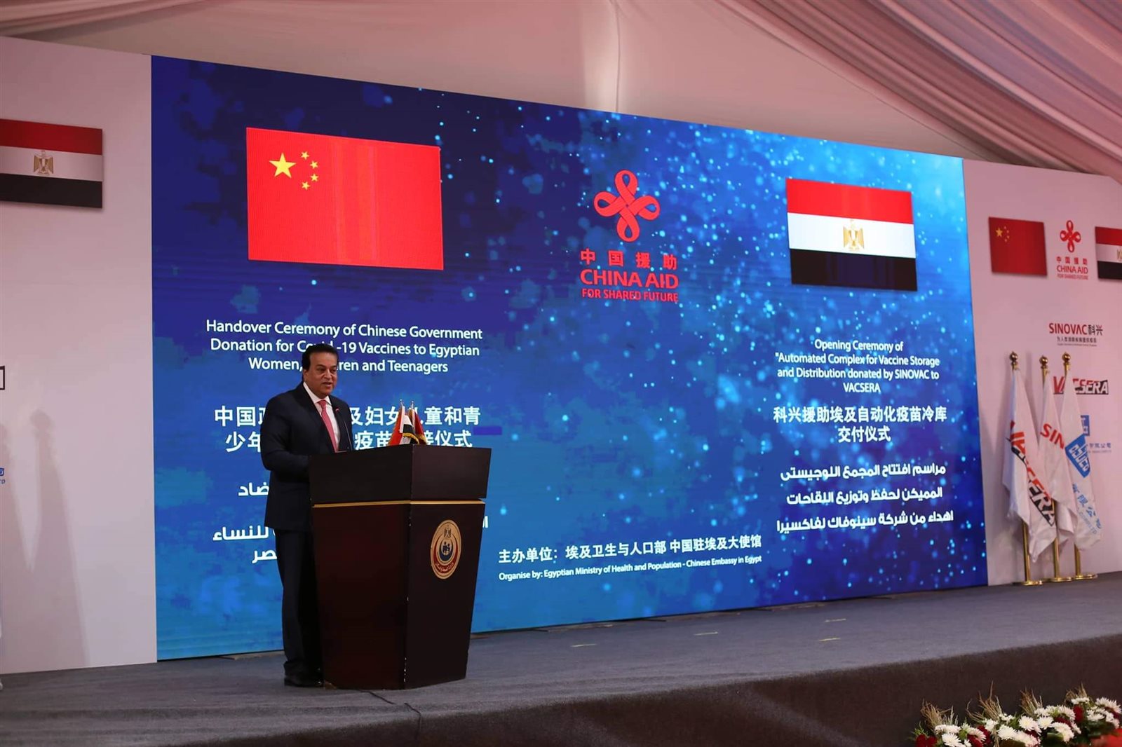 جاء ذلك في حفل افتتاح المجمع اللوجيستي المميكن لحفظ وتوزيع اللقاحات بالشركة القابضة للقاحات والمستحضرات الحيوية "فاكسيرا" بمدينة السادس من أكتوبر، والذي تم تدشين أعمال الإنشاء به في منتصف شهر أبريل الماضي، وذلك بالتعاون مع شركة «سينوفاك» الصينية.