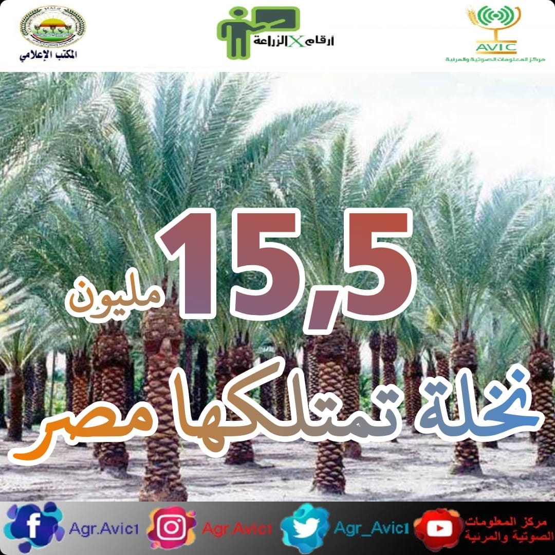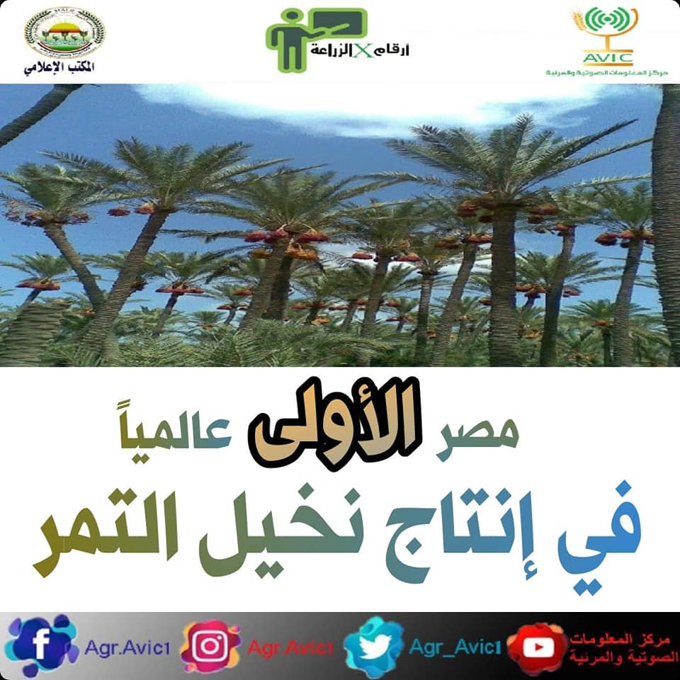 وقال إن مصر تعد الأولى عالميا في إنتاج نخيل التمر، حيث تمتلك حوالي ١٥.٥ مليون نخلة، على مساحة إجمالية حوالي ١٣٥ ألف فدان، تمثل إجمالي المساحة المنزرعة بنخيل التمر في محافظات مصر.