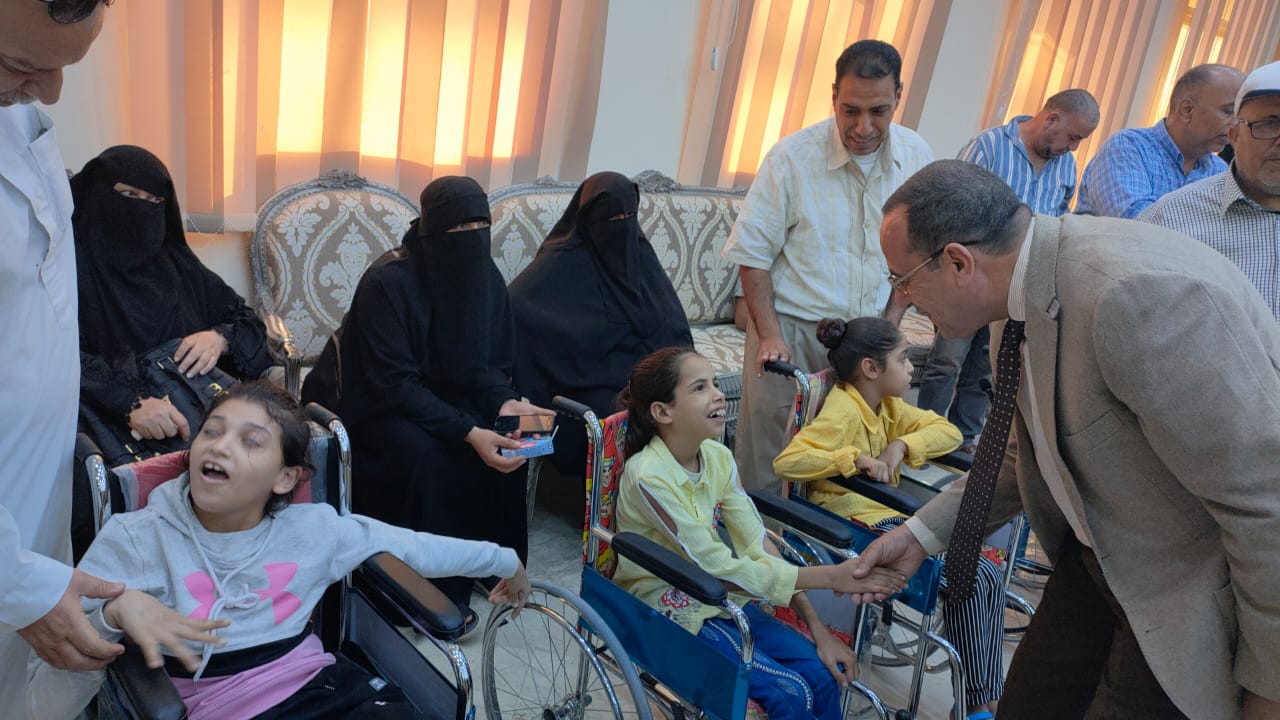 محافظ شمال سيناء يوزع 25 كرسي متحركا على ذوي الاحتياجات الخاصة