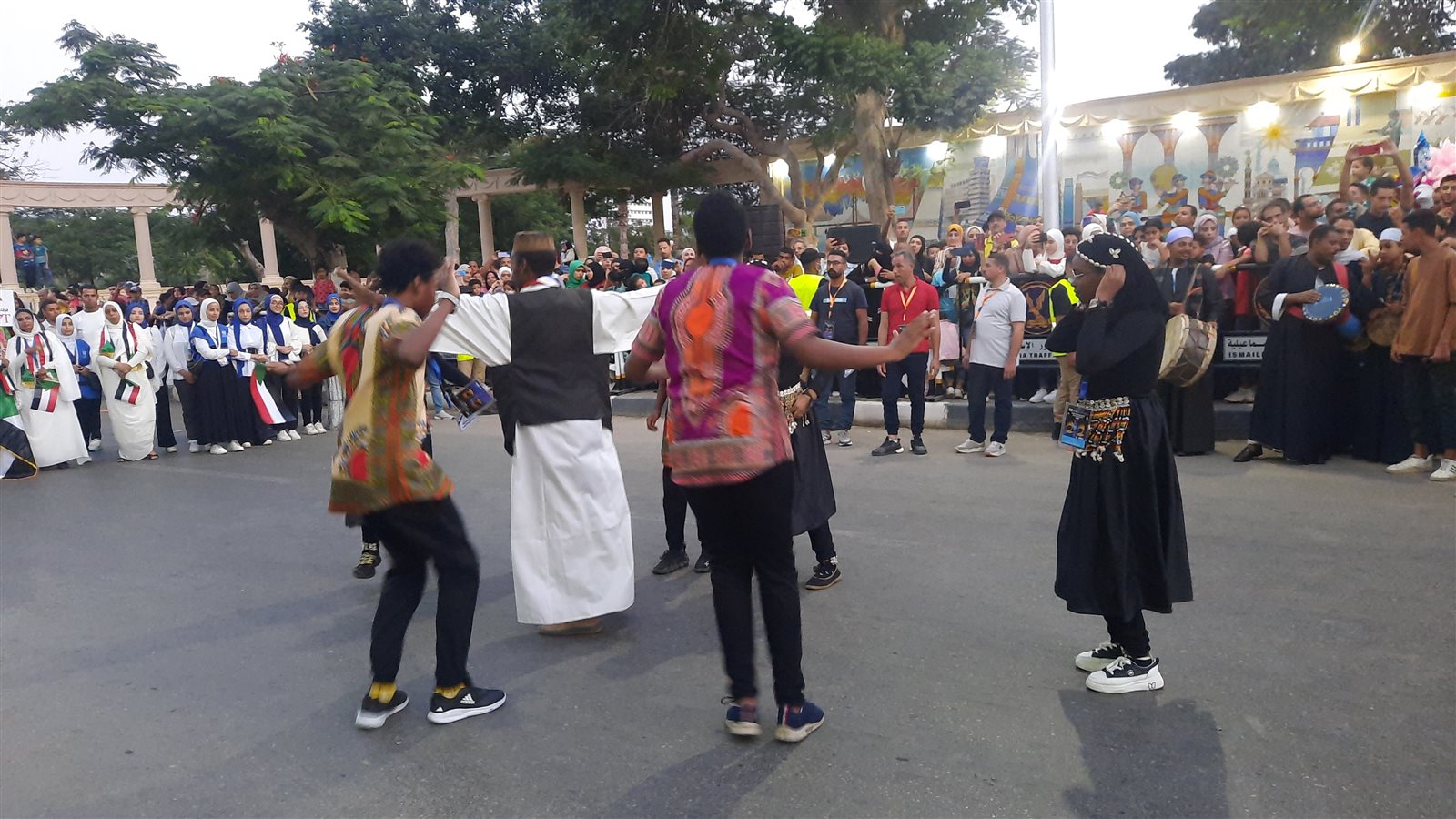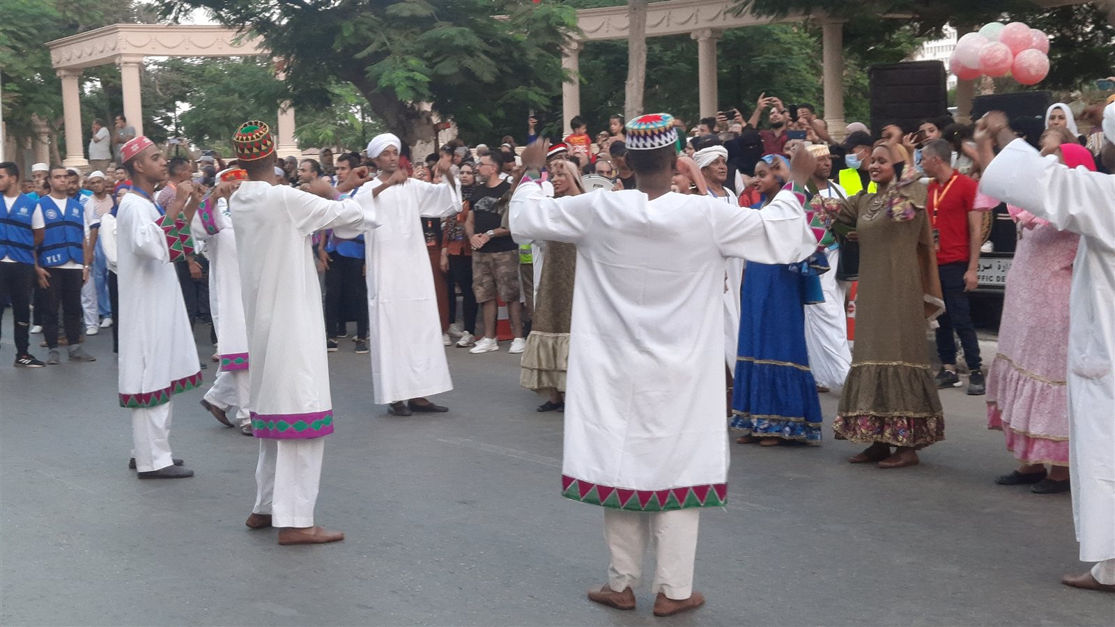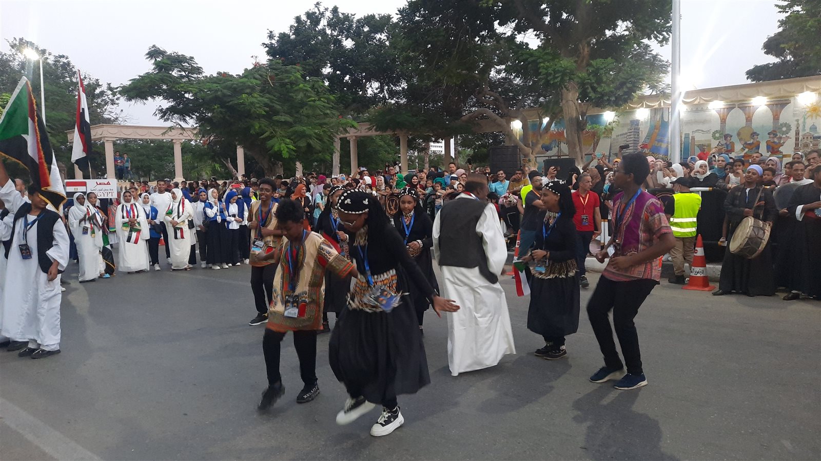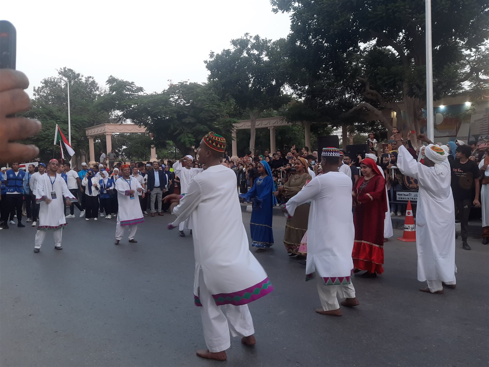 فرقتا فلسطين والسودان تشعلان ديفيليه مهرجان الإسماعيلية للفنون الشعبية | فيديو