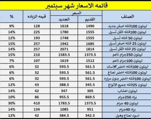 وتراوحت الزيادة الجديدة في الأسعار ما بين ٦ إلى ٣٠%.