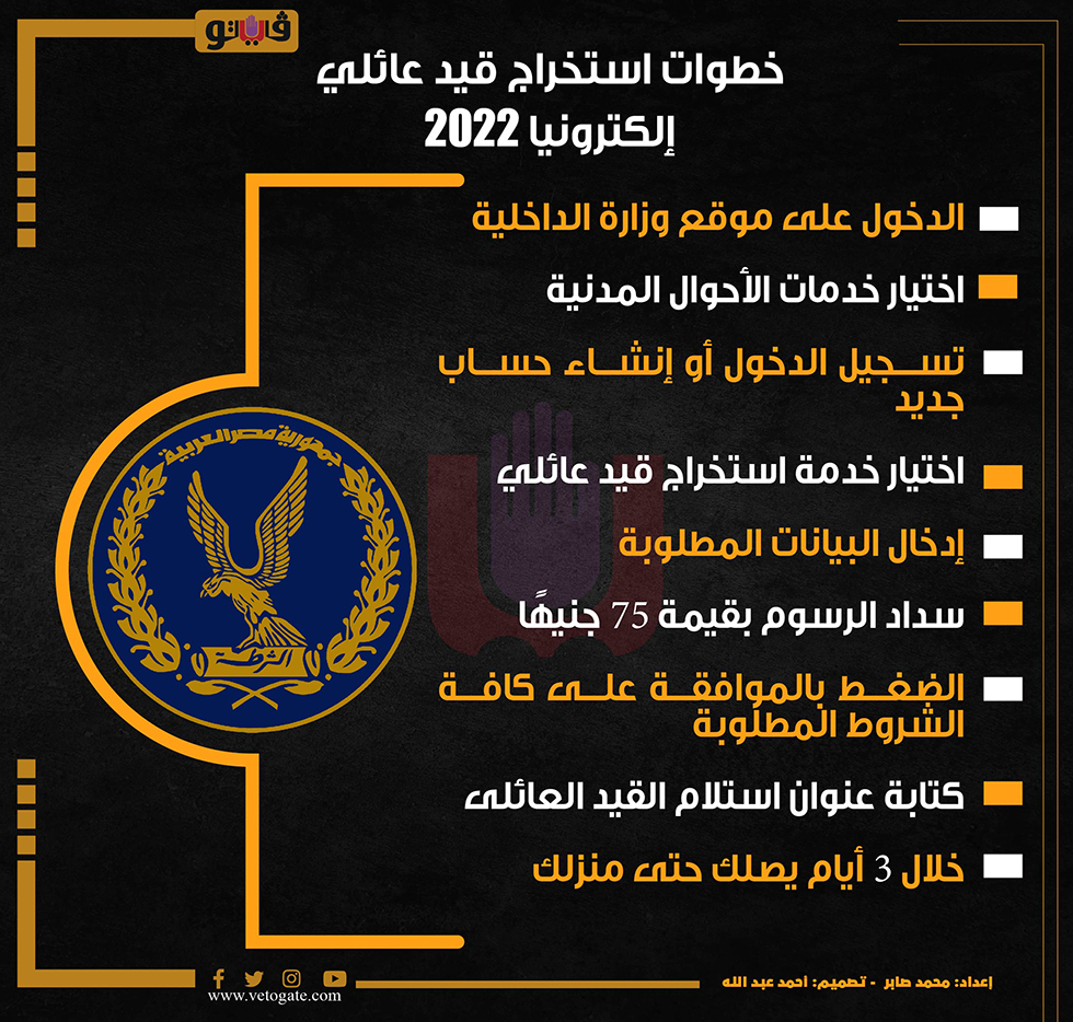 خطوات استخراج قيد عائلي إلكترونيا 2022 | إنفوجراف الإثنين 26/سبتمبر/2022 - 04:13 م 9/26/2022 4:13:15 PM خطوات استخراج قيد عائلي محمد صابر شارك طباعة 18 حجم الخط شارك طباعة استخراج قيد عائلى استخراج القيد العائلى موقع وزارة الداخلية وزارة الداخلية الاحوال المدنية القيد العائلي
